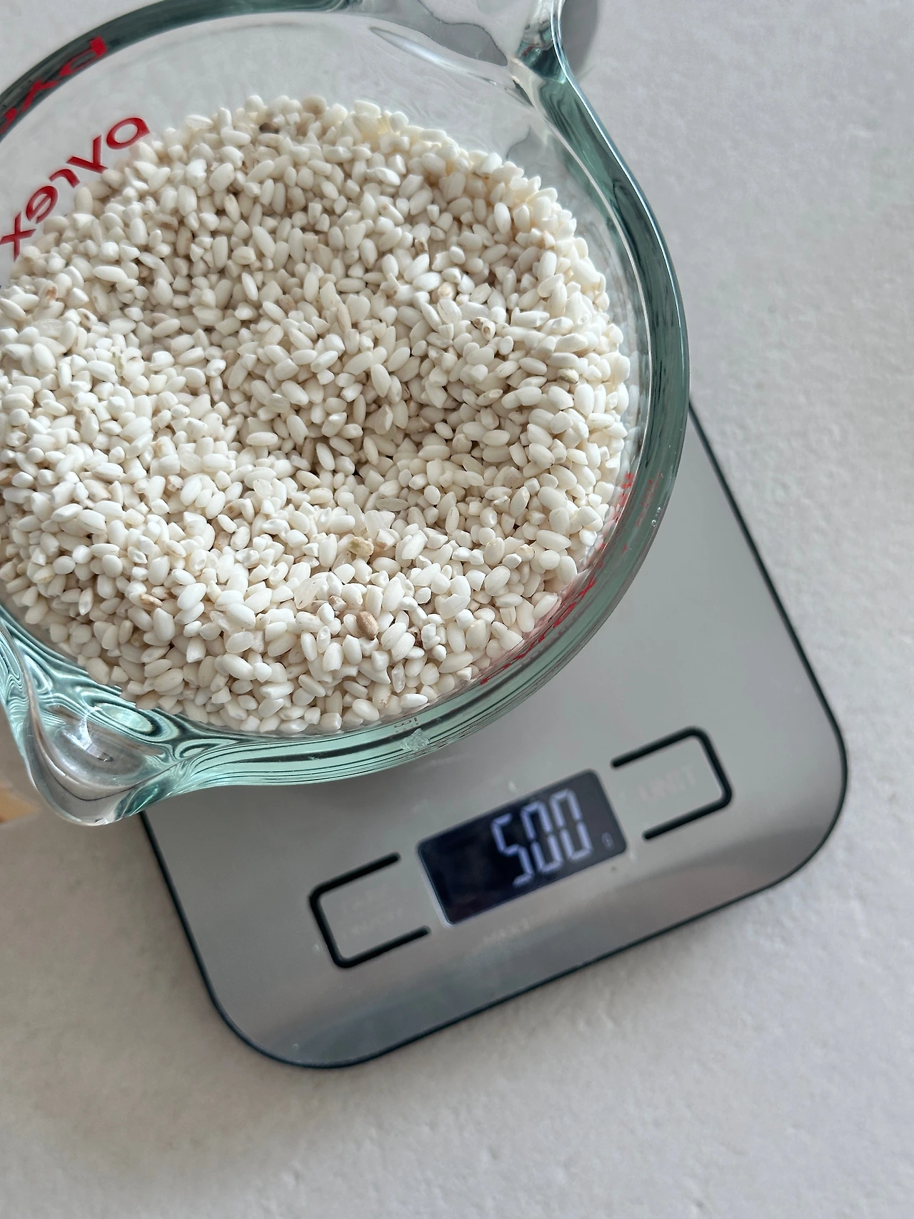 우선, 아주 차가운 물로 쌀을 씻는다. 손이 새빨갛게, 얼얼해져 무감각 해질 때쯤 이쯤에서 그만두고 대충 만들까 싶지만, 거기서 대여섯 번 더 물을 갈아주며 씻다 보면 딱 원하는 정도의 뽀얀 상태가 된다. 그렇게 씻은 쌀은 반나절 불렸다가 지에밥(고두밥)을 지어준다. 식사용 밥을 지었을 때보다 훨씬 고슬고슬하고 고소하고 단맛이 은은하게 퍼진다. 잘 쪄진 밥을 쟁반에 퍼담고 있자니 입맛이 싹 돈다. 몇 줌은 입으로 들어가게 될지도. 뜨거운 지에밥은 빠르게 식혀주는 게 좋다길래, 이 작업은 주로 시원한 바람이 부는 새벽에 한다. 가만 보니 해가 뜨기도 전, 툴툴거리지 않고 이토록 눈이 번쩍 떠진 적이 있던가 싶다.