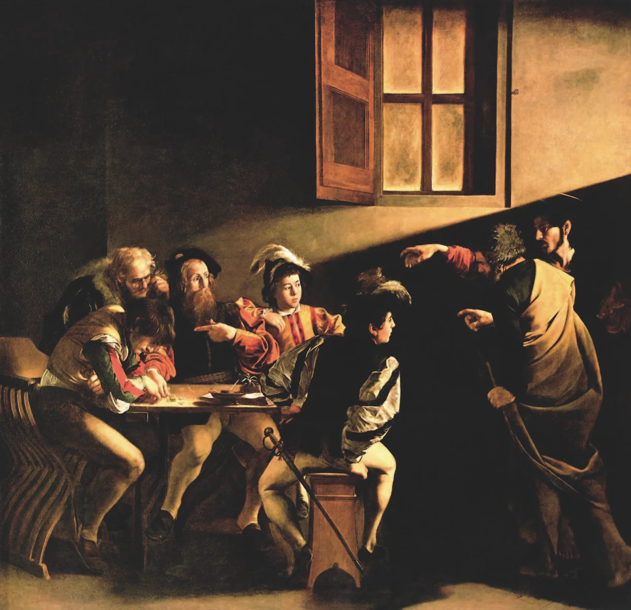하느님의 부르심에 세리였던 마태오도 길을 떠난다. 23년 2월 25일 매일미사에는 이 그림에 대한 강론과 교황님의 인터뷰 내용 등이 담겨 있다.