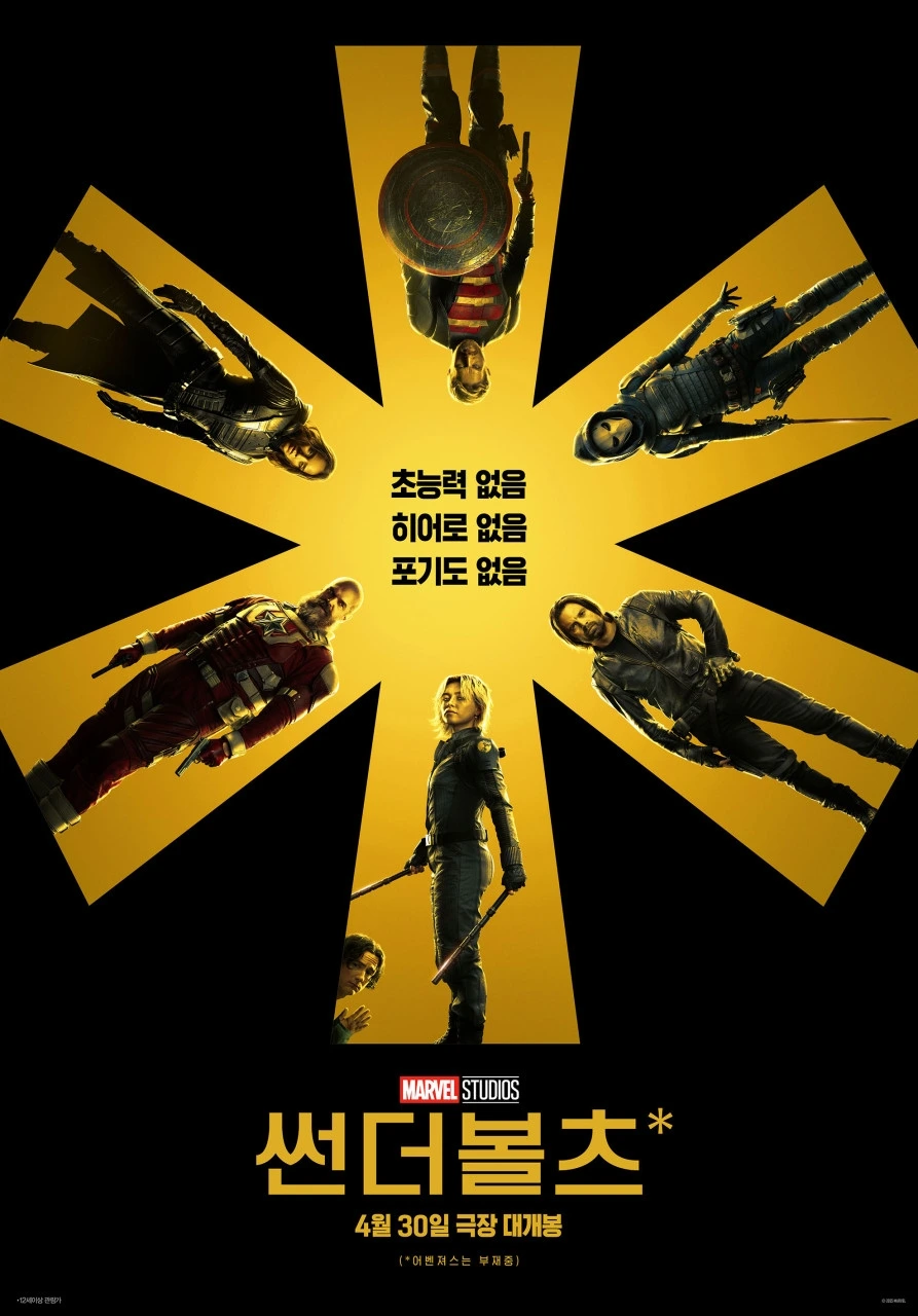 어제는 오랜만에 마블영화를 봤다. 생각해 보니 '어벤져스 엔드게임'(2019)까지는 영화관에서 보고 '블랙위도우'(2021)는 집에서 본 게 마블 영화의 마지막이다. 그러니 '썬더볼츠'(2025)는 6년 만에 영화관에서 본 마블 영화다. '블랙위도우'를 봐서 그런지 이번 영화가 반가웠고 뭔가 팡팡 터지는 스릴 넘치는 영화를 보고 싶었다. 내가 원하는 대로 팡팡 터지고 멋지게 싸우지만 초능력은 없는 영웅들 이야기는 위트가 있었다. 포스터에 빼꼼 얼굴만 내밀고 있는 밥이라는 남자가 초능력이 있긴 하다.