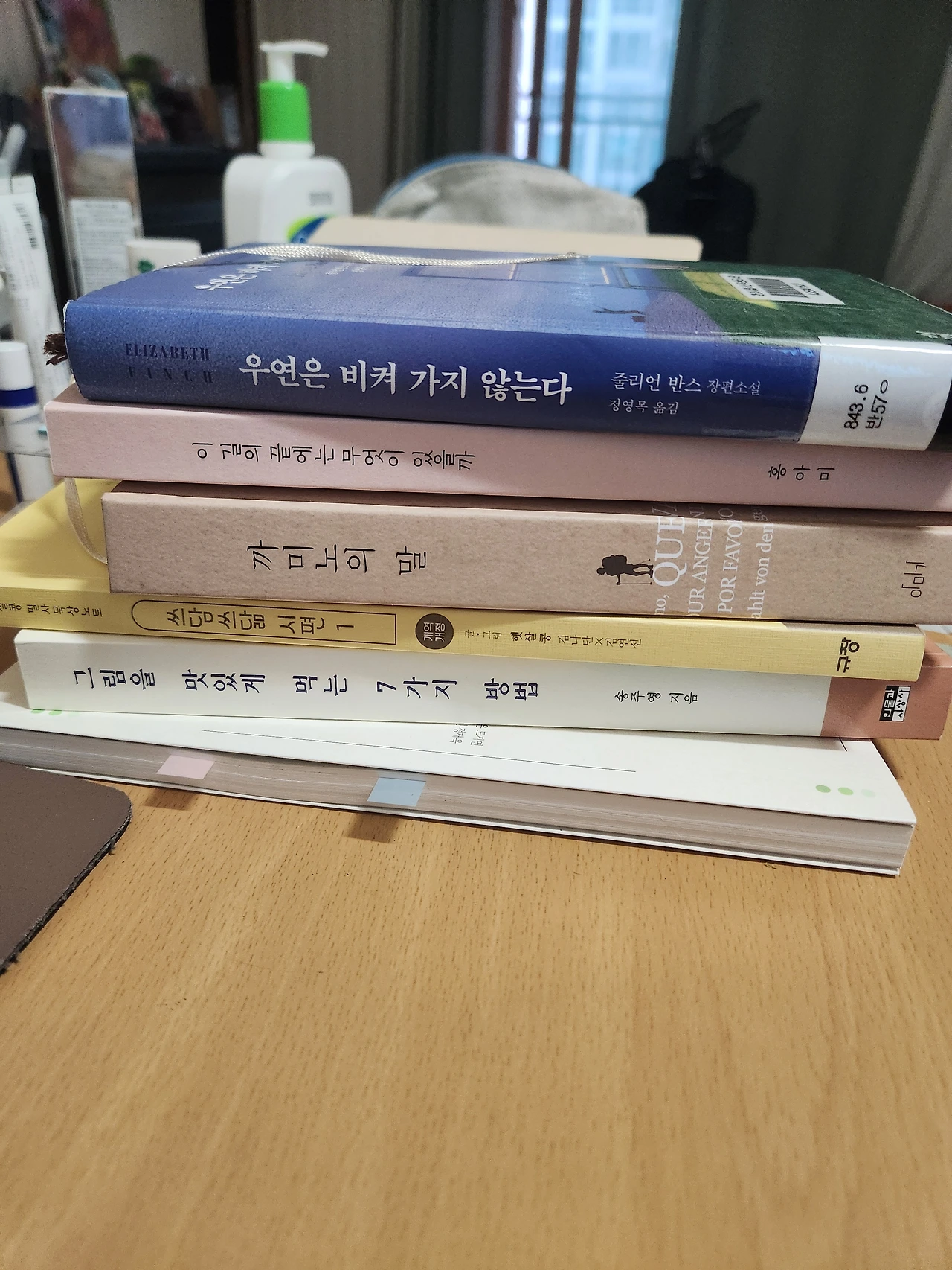 내 책상에는 항상 지저분하게 책이 쌓여있다.