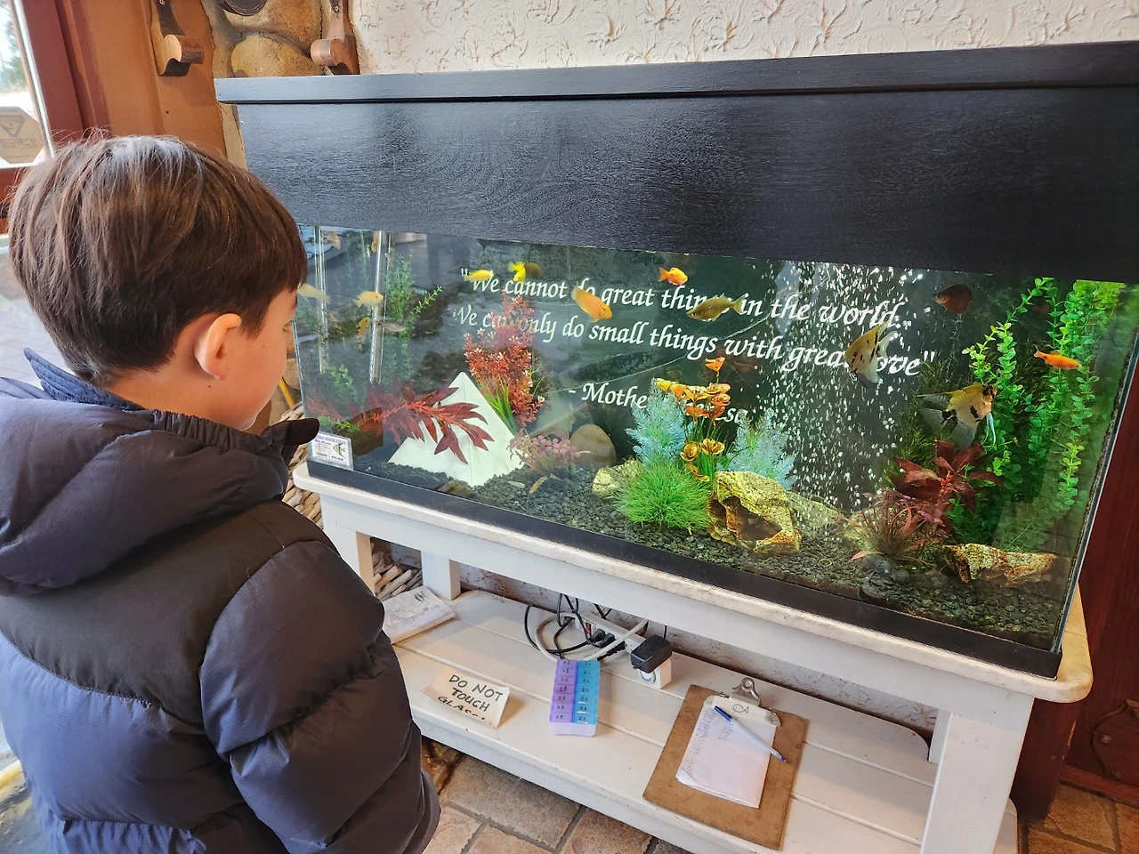 썸머힐 와이너리 내부에 있는 수족관에 문구가 인상적이다.