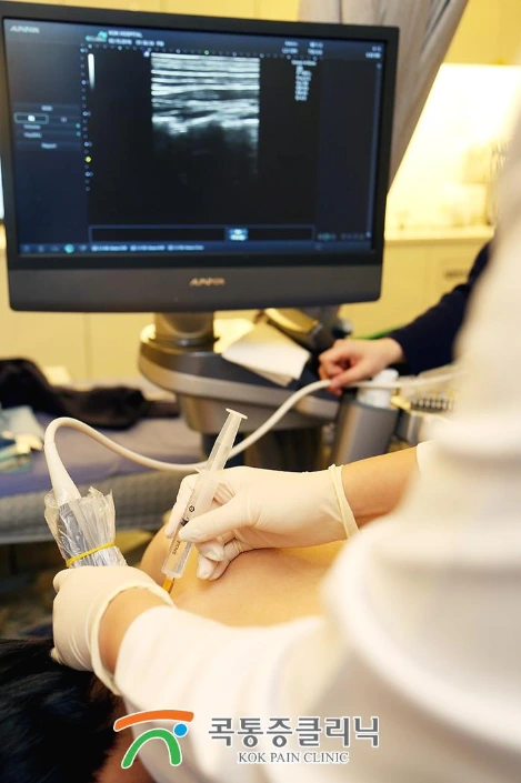 초음파유도하주사치료는 초음파로 통증 부위를 확인하면서 동시에 약물 치료를 하는 치료 방법이랍니다. 관절 초음파 변환기를 통증 부위에 댄 후 초음파를 투과시켜서 통증부위를 확인하고, 주사액을 병변에 직접 주입하여 신경 염증을 제거하는 것입니다.