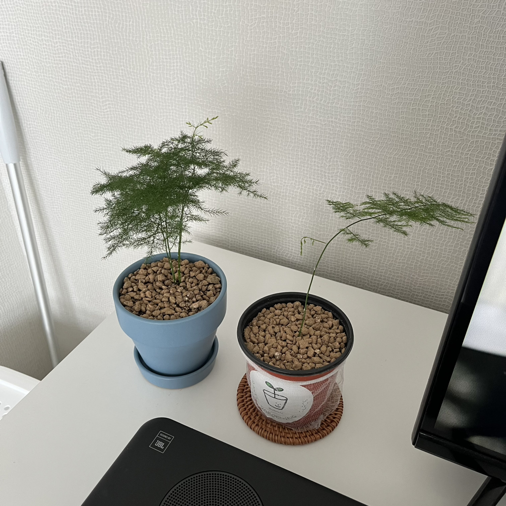아스파라거스를 키운다길래 고기 먹을 때마다 곁들이는 젓가락 모양의 아스파라거스인 줄 알았다. 동기가 키우는 아스파라거스는 나누스라는 종인데 여리여리한 잔가지들이 너무나 매력적이다. 가만히 보고 있으면 과장을 조금 보태 안개 낀 날 제주도 샤려니숲길을 보는 듯한 느낌이랄까.