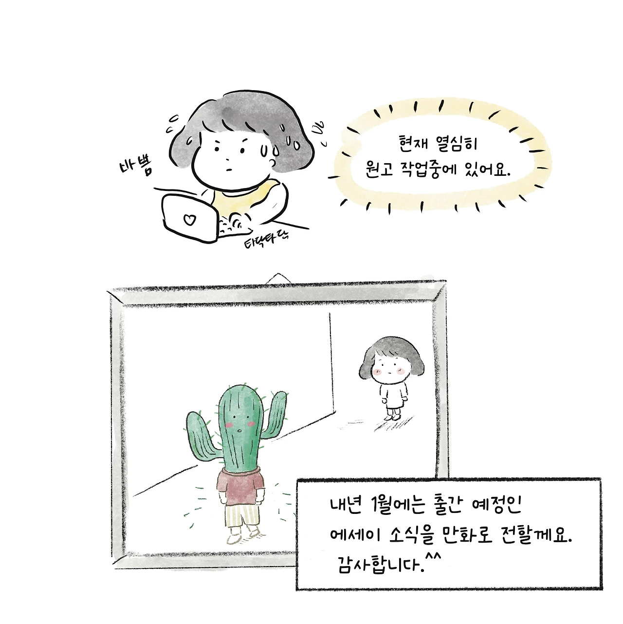 내년 1월에는 출간예정인 에세이 책에 관한 소식을 만화로 전할게요.