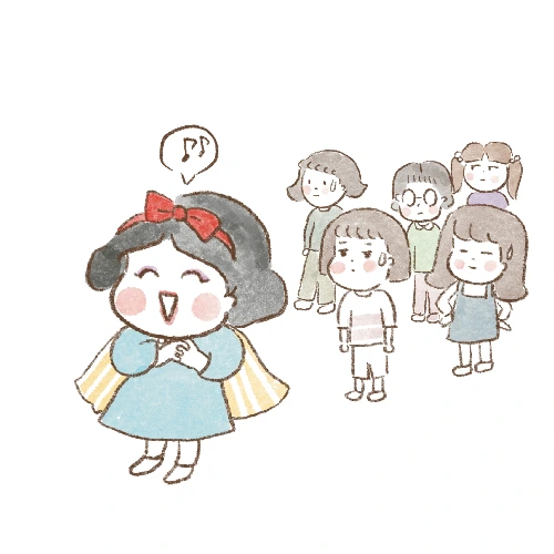 그 결과로 주인공이 된 나는 신이 나서 백설 공주 망토를 하고 엄마의 립스틱을 발라서