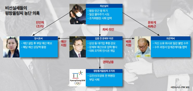 실제 정 소장이 지난달 작성한 '체육예산의 이해' 교육 자료를 보면 밑그림이 그려진다. 첫째, 최순실과 상의한 박근혜 대통령이 관련 예산을 확대한다. 둘째, 체육계를 옥죄고 접수한 김종 전 차관이 문체부 예산 집행에 드라이브를 건다. 셋째, 정권 막판 평창동계올림픽에서 비선 소유의 회사로 사업 수주 싹쓸이를 도모한다. 넷째, 이러한 이권은 다시 최순실을 비롯한 비선으로 되돌아간다.