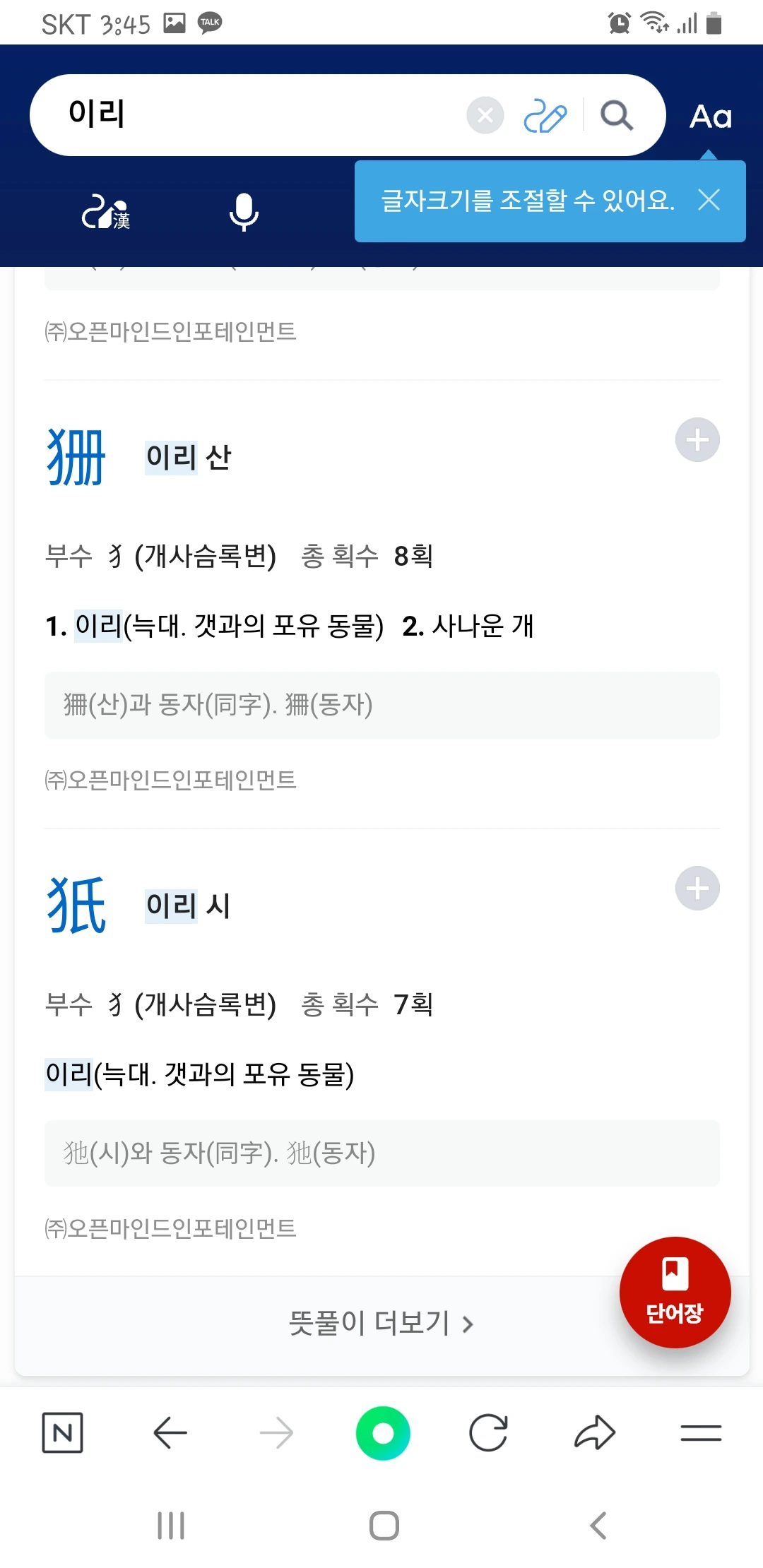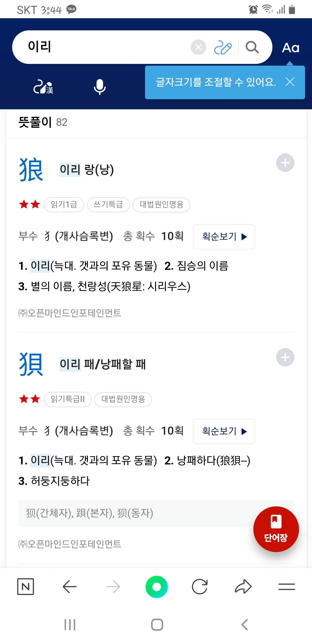 이리로 검색된 한자어. 낭, 패, 산, 시
