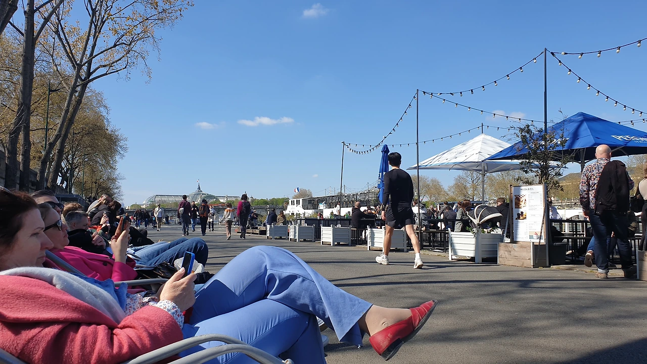 센강 노천카페의 비치의자에 앉아있다, 아니 누워있다