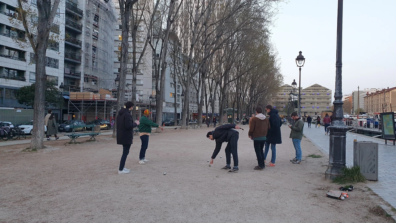 운하 수로를 따라 공원이 있는데 남자들이 구슬치기를 하고 있었다. 구슬이 정말 커 놀랐다
