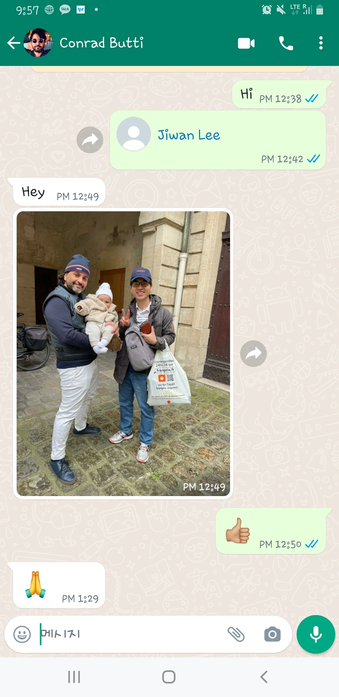 내 보기에도 아빠보단 엄마 인물이 나았다. 빗줄기가 가늘어지자 다들 짐을 챙기기 시작했다. 나는 사진을 요청했다. 전날 생각해 보니 여기서 만나게 된 사람들과 찍은 사진이 하나도 없어서 아쉬웠기 때문이다. 그의 부인이 흔쾌히 찍어주었다. 애아빠는 내 왓츠앱 큐알로 친구 먹기를 한 다음 헤어진 지 5분 만에 사진을 보내줬다. 그에게도, 자라서 이 사진을 보게 될 귀여운 아이에게도 좋은 추억이 되길...