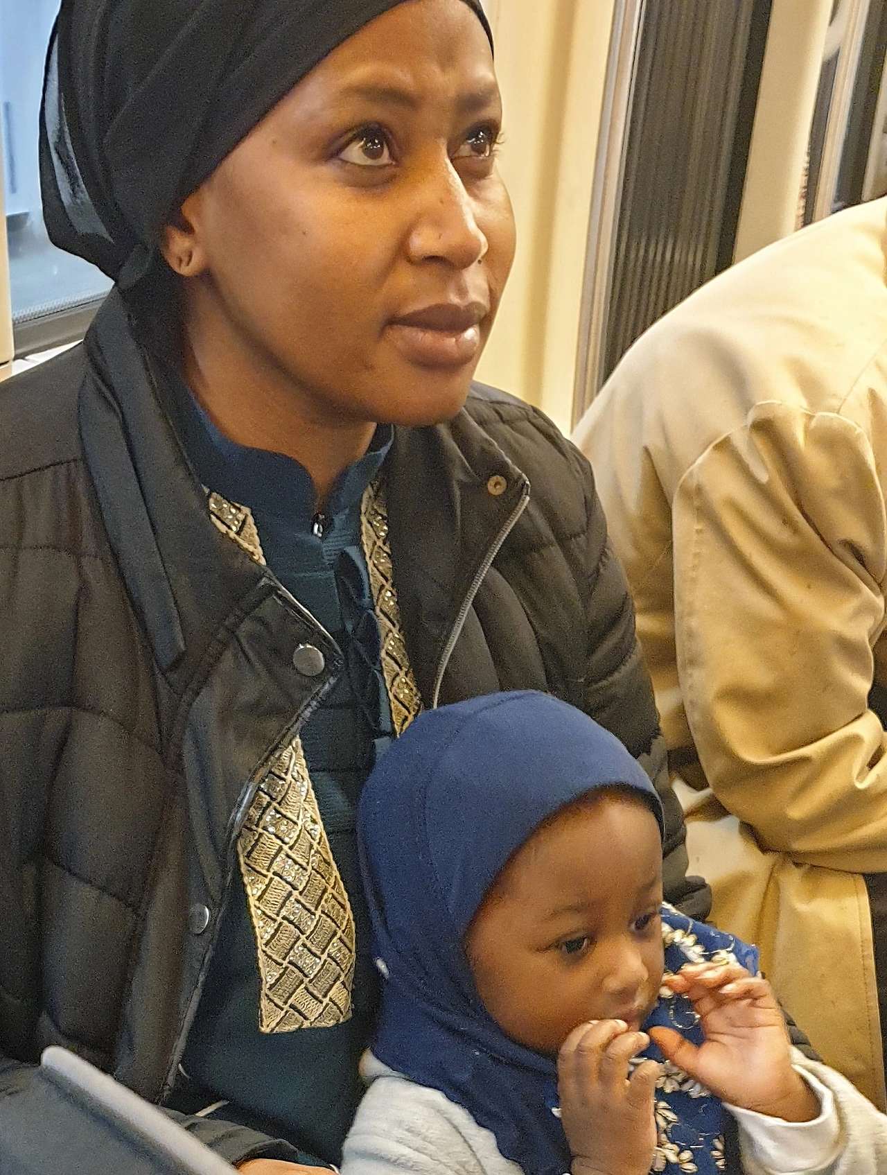 국적, 피부색을 불문하고 아이는 늘 귀엽다. 지하철 7호선에서 마주친 모자. 아기가 귀여운 이유는 어른의 동정심을 사 살아남기 위해서라는 설이 있다