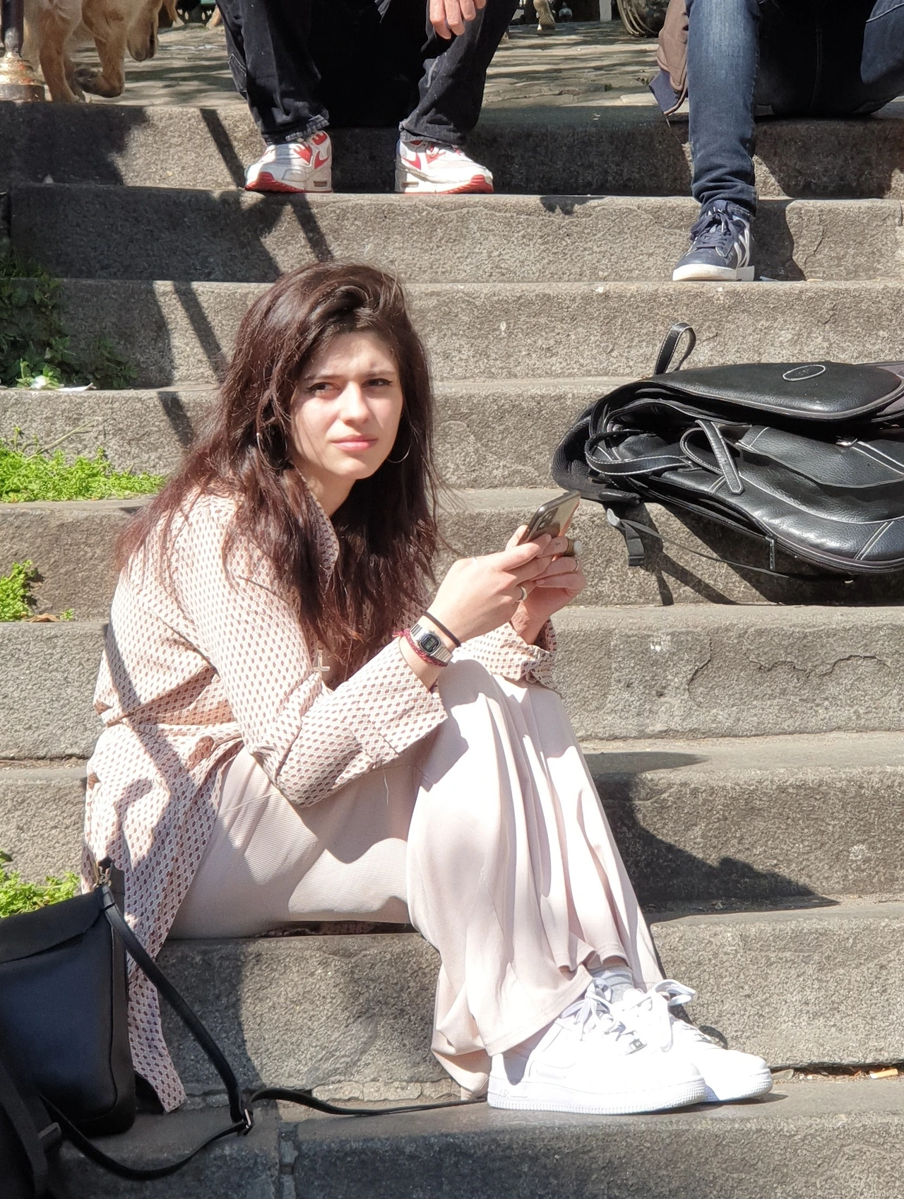 몽마르트르에서 같이 버스킹 연주를 듣던 젊은 여자. 기타 가방이 있는 걸 보니 뮤지션일지도 모른다