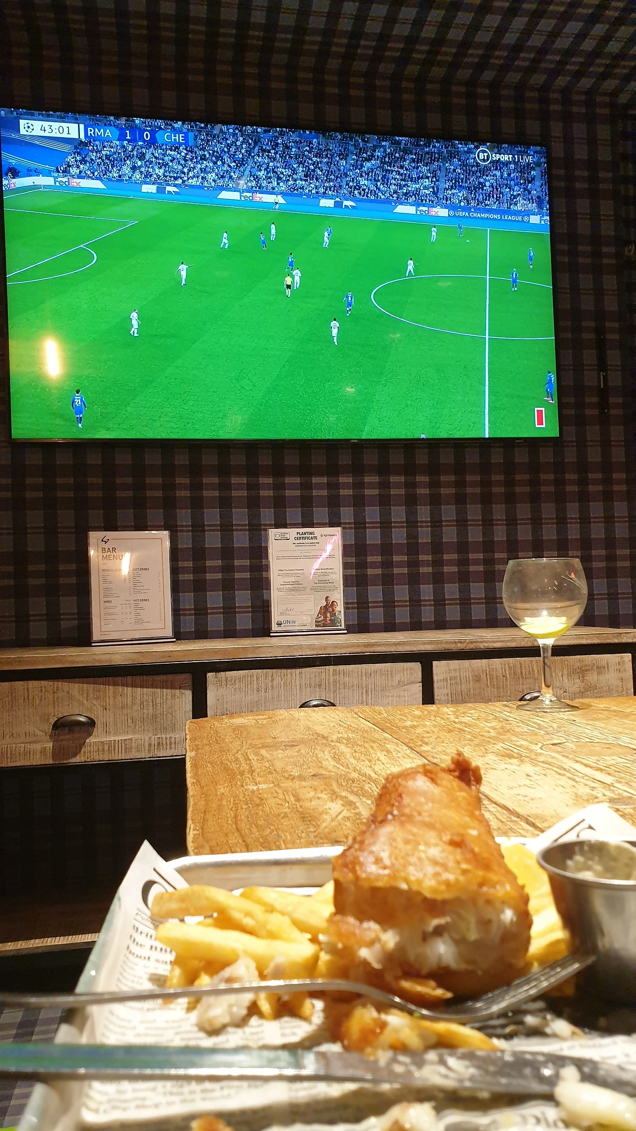숙소 안 식당에서 피쉬 앤 칩스를 씹고있스. 독방을 쓰는데도 새벽에 깨 뒤척였다. 여파가 하루종일 힘들게 했다. 타워 브릿지를 끝으로 4시쯤 들어와 낮잠을 잤다. 저녁 배꼽이 울려 내려와 시켰는데 기대보다 맛있다. TV에서는 레알마드리드와 첼시의 유럽 챔스리그 경기를 중계하고 있다. RMA 벤제마가 한골 넣어 1:0, 지금은 쉬는 시간이다. 유럽에 온다니까 축구 경기를 보고 오라는 사람들이 꽤 있었다. 파리에서 음바페와 메시를, 런던에서 손흥민을 보면 좋겠다는 거다. 그렇긴 하지만 사람마다 취향은 다르다고요. 그래도 밥 먹으면서 축구 중계를 보고 있노라니 그렇게 권한 사람들의 대리만족을 시켜주는 것 같아 약간의 보람을 느낀다.