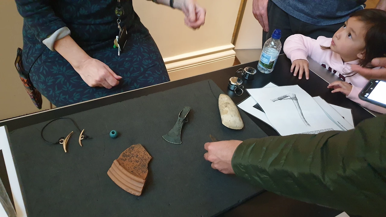 해설사가 신석기 시대의 유물을 가지고 설명도 해준다