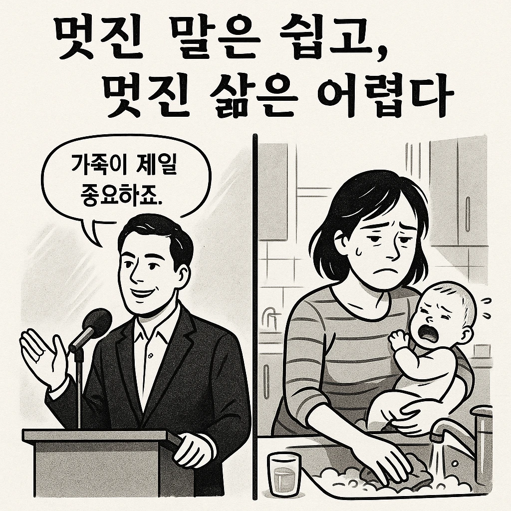 사람들의 동경 어린 눈빛이 좋았습니다. 그 감정에 취해 살았습니다. 스스로 가족을 우선하고, 제가 하는 일에 최선을 다하는 멋진 삶을 살고 있다고 착각했습니다. 하지만 그것은 거짓이었고 달콤한 환상이었습니다. 환상은 아내의 “나 너무 힘들어” 한마디 말에 깨졌습니다.