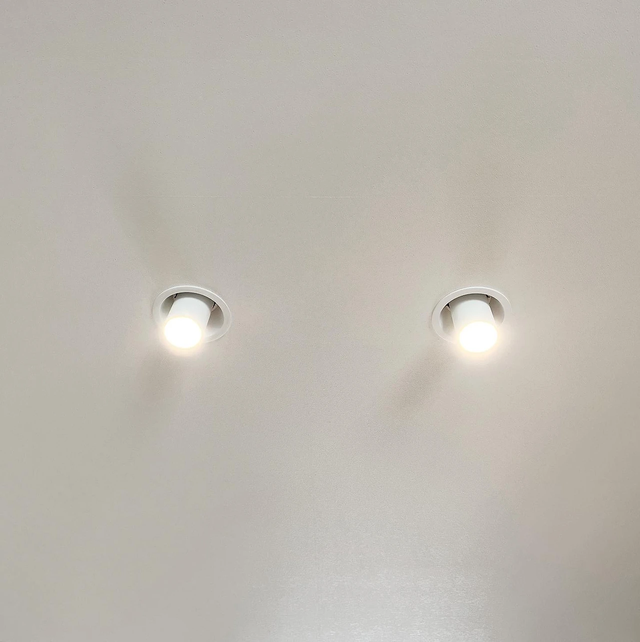 다운라이트는 2 ~ 8인치까지 있는데 크기가 커지는 만큼 타공 구멍의 크기도 커지고, 조도도 밝아진다. 5인치 이상의 다운라이트는 밝은 대신 타공 구멍이 지나치게 크기 때문에 주거 공간보다는 층고가 높은 매장 같은 상업시설에서 주로 사용된다. 반면 주거 공간에서는 3인치 혹은 4인치 다운라이트가 주로 사용되는데 다운라이트의 크기가 작으면 작을수록 타공 사이즈가 작아서 천정이 깔끔해지는 효과가 있다. 그래서 최근에는 2인치까지 설치하는 사례도 있긴 한데 그렇게 되면 조도가 너무 낮아지기 때문에 2인치는 신중하게 선택해야 된다. 나는 전부 3인치 다운라이트(6W)로 통일시켰는데 타공 사이즈나 밝기도 적절한 것 같다.