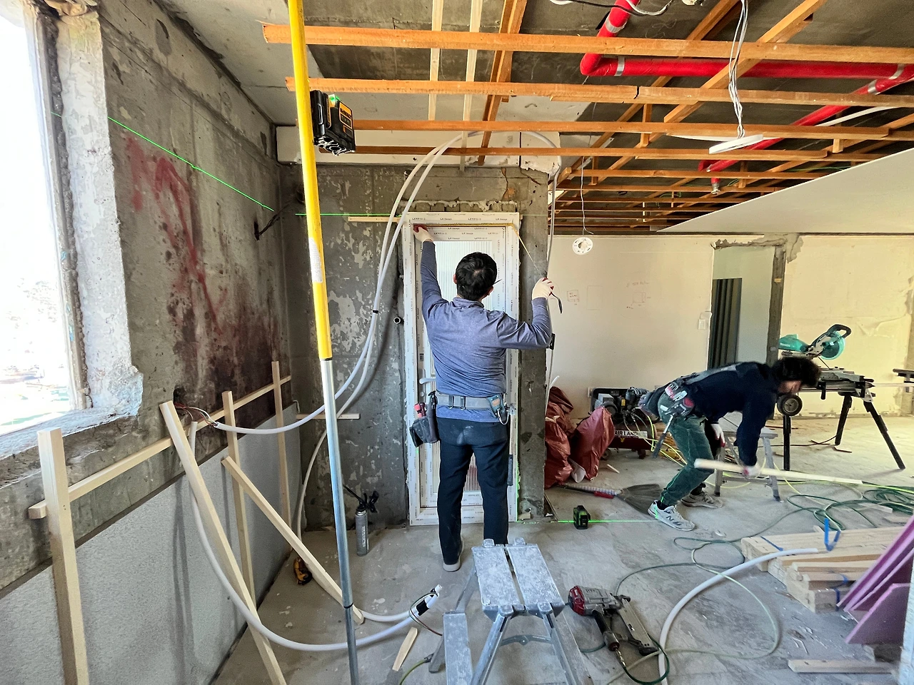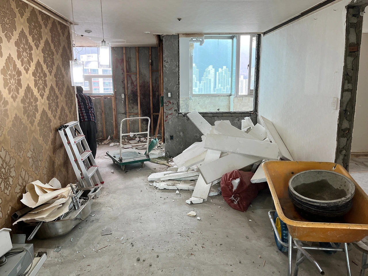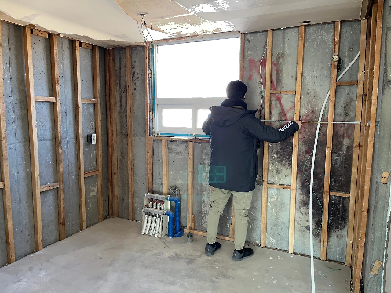 앞에 주방을 설명할 때도 이야기했지만 주방 철거 후 이케아 실측을 요청하면 된다는 이야기만 듣고 철거된 상태에서 이케아 주방 실측을 받았다. 우리 집처럼 벽에 있는 석고까지 다 뜯은 현장의 경우, 이후에 목공 작업으로 벽면의 석고 보드가 얼마나 튀어나올지 모르기 때문에 잘못하면 나중에 설치를 못할 수도 있다는 이야기를 들었다. 그로 인해 설치가 안 되는 책임은 이케아에서 지지 않는다는 것이다.