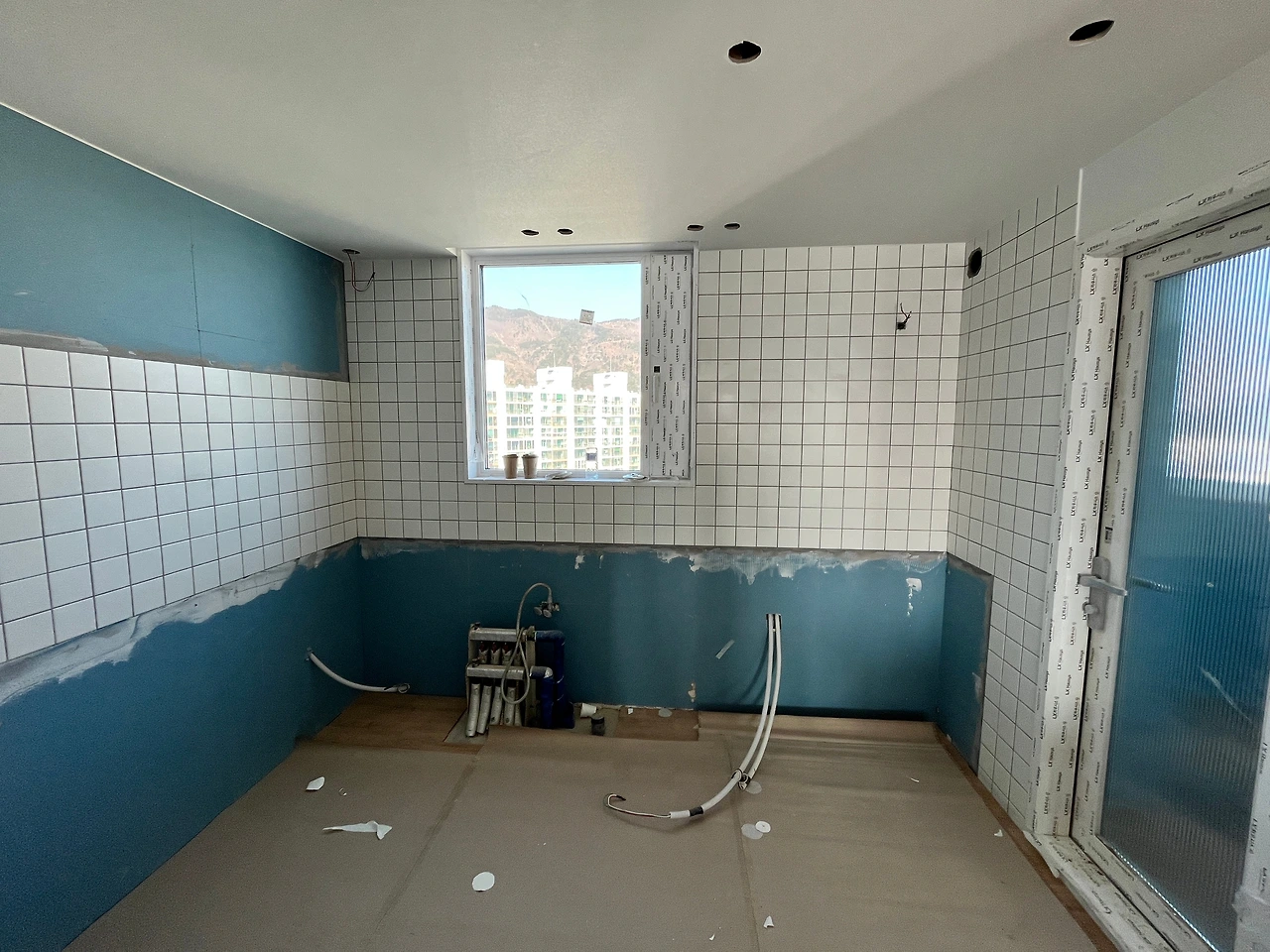 이런 과정에서 냉장고가 있었던 자리에 창문이 하나 있었는데 이 창문은 쓸데가 없어서 철거하고 가벽으로 막기로 했다. 뒷 베란다를 통해서 들어오는 외부의 차가운 공기를 막기 위해 단열을 꼼꼼하게 진행했다.