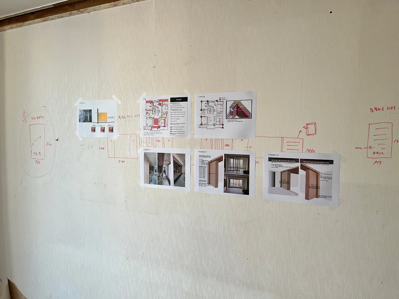 작업 전날엔 그 작업에 해당하는 부분을 컬러 프린트해 현장 벽 곳곳에 부착해 놓았던 점도 굉장히 도움이 됐다. 이미 전달한 내용이지만 작업자 분들이 오며 가며 자연스럽게 보게 되고, 놓치는 부분 없이 일을 마칠 수 있었다. 까탈스러운 놈이라고 눈으로 욕하면서 고개를 절레절레 흔드시는 사장님도 계셨지만, 절대 그런 눈빛에 흔들려선 안된다. 내가 원하는 의도를 정확히 전달하지 않아 평생 후회하느니 아쉬운 소리라도 하면서 최대한 요구사항을 콕 집어 세부적으로 전달할 필요가 있다. 대부분의 작업자분들은 내가 붙여둔 프린트물을 보시고 굉장히 편해했고, 나는 현장에 없더라도 내 의도를 정확하게 전달할 수 있었다.