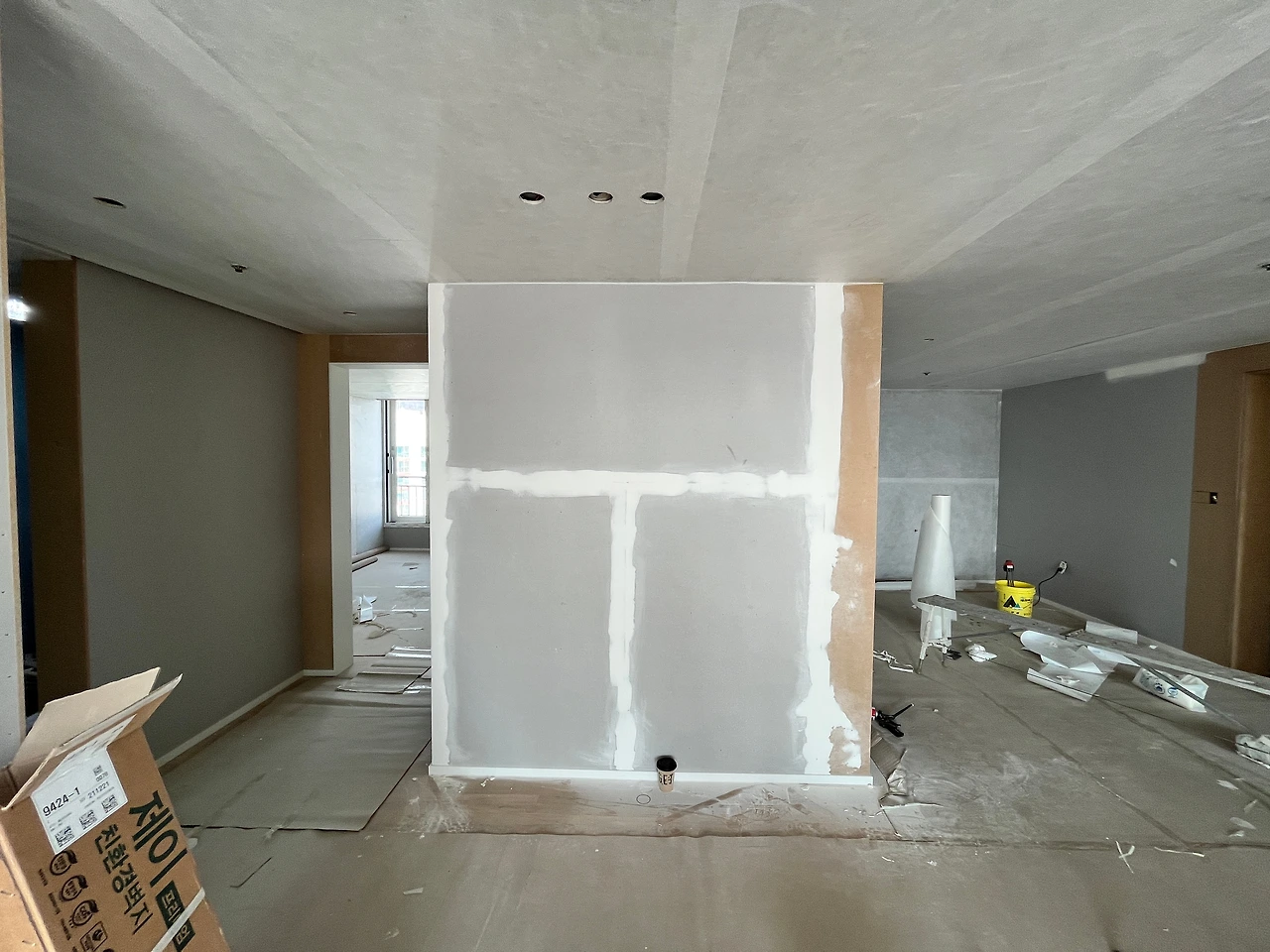 내가 직접 해보면서 느낀 것이지만 페인트 도장은 아무나 하는 게 아니다. 더군다나 베란다 같이 비거주 공간이 아닌 안방, 거실 같은 거주공간에는 무조건 전문 업체가 시공하는 것을 추천한다. 페인트 도장을 하기 위해서는 사전작업이 필요한데, 바로 퍼티로 페인트 도장할 부분의 면을 고르게 잡아 줘야 한다는 점이다.