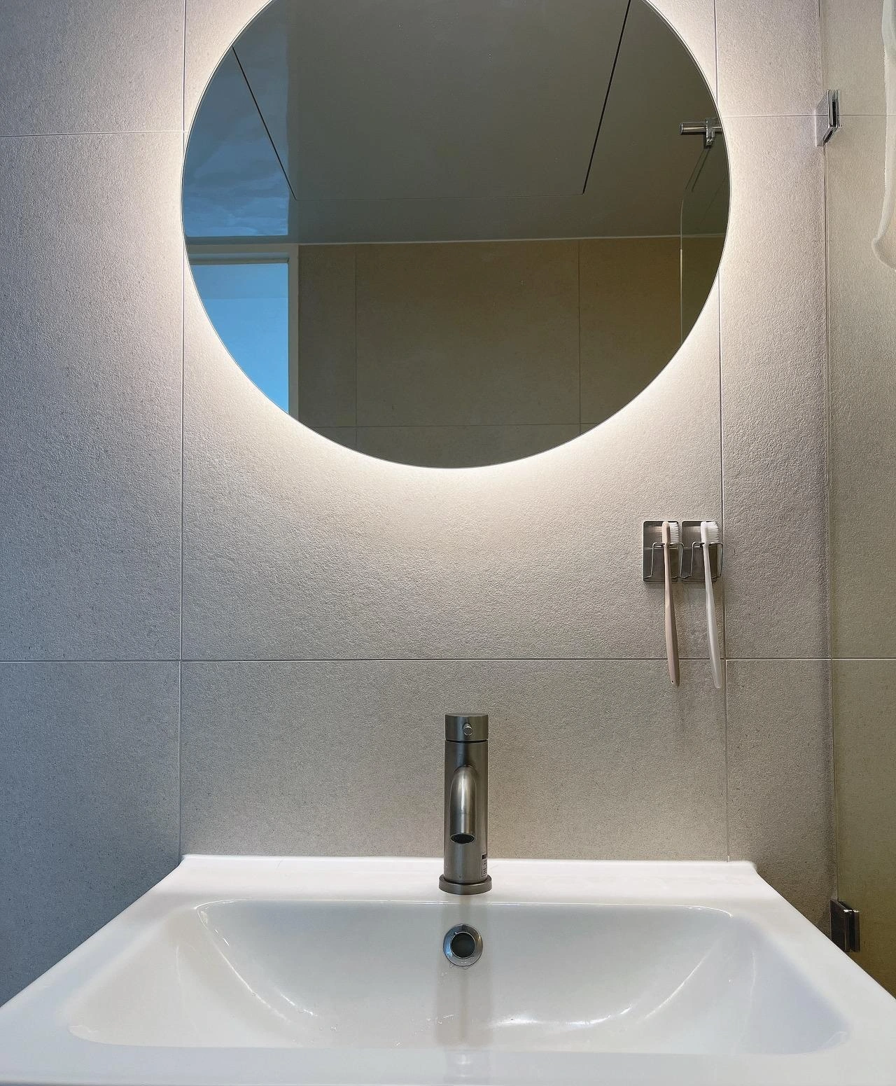 내가 욕실 타일을 선택할 때 잡은 기준은 두 가지다. 600*600각의 대형 타일을 시공해 마치 호텔 욕실에 온 듯한 느낌이 들도록 하는 것과 최대한 거친 표면을 가지고 있어 아이가 욕실을 쓸 때 미끄럼 방지 효과가 있도록 하는 것이다.