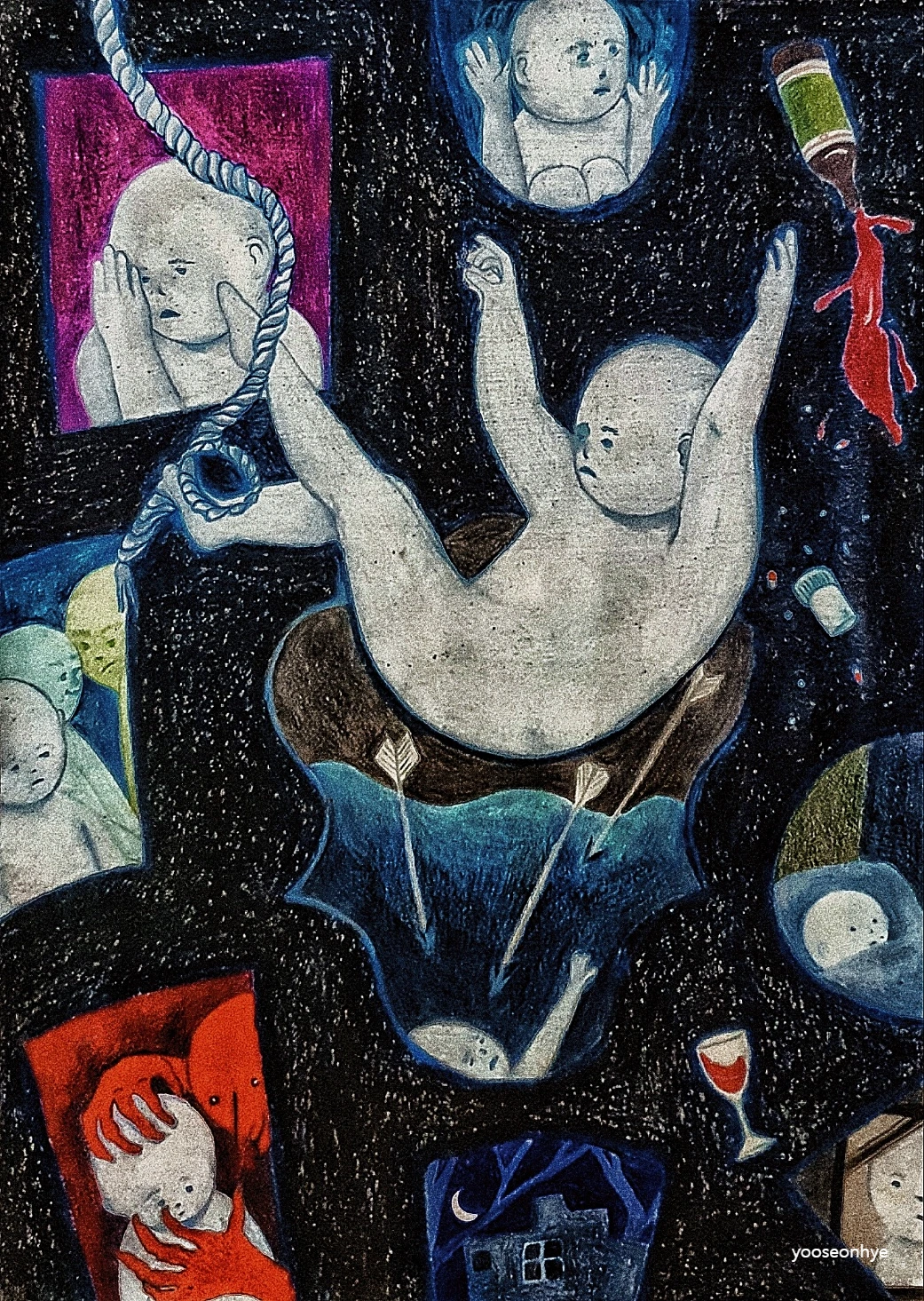걱정하던 일이 있어났다. B는 결국 심연에 빠지고야 말았다. 발이 닿지 않는 깊은 바닷물 속에서 버둥거리며 가라앉듯 B는 끝없이 무서운 속도로 더 깊게 추락하고 있었다. 심연 속에는 무서운 괴물도 유령도 없었다. 그 속에는 수많은 B 만이 있었을 뿐이었다. 그리고 어떤 소망도 희망도 기대하지 말라는 악마의 속삭임만이 가득한 듯했다.