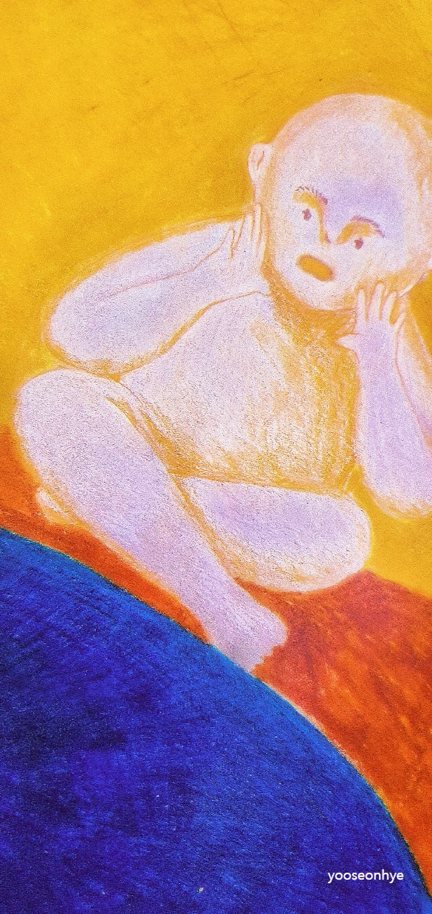 문의 색은 다 달랐지만 B는 이상하게도 검고 푸른 문이 자꾸 신경 쓰였다. 추락하는 와중에 그는 눈을 감고 그 검고 푸른 문을 상상했다. 그러자 신기하게도 그 문은 스스로 열려버렸다. 그 안에는 아무것도 없었다. 누군가 머물다 간 흔적은 보였지만 어떤 온기도 느껴지지는 않았다. 그 안으로 발을 내딛자 걷잡을 수 없을 것 같은 불안감과 절망감이 B를 짓눌렀다. 엄청난 압력에 그는 갈비뼈가 으스러지는 느낌이 들었다. 당장 그곳에서 나와야 한다는 생각이 들었지만 왜인지 발이 떨어지지 않았다. 눈을 떠야 해! B는 생각했다. 하지만 그가 그렇게 간절하게 나오고 싶을수록 발은 더 딱딱히 바닥에 고정되었고 두려움이 커져갔다. 그때 아주아주 멀리서 누군가 자신을 부르는 것 같은 느낌이 들었다. B는 잠시 빠져나갈 수 있다고 생각해 귀를 더 기울여봤지만 아무 소리도 들려오지 않았다. 완전한 어둠 속이었다.