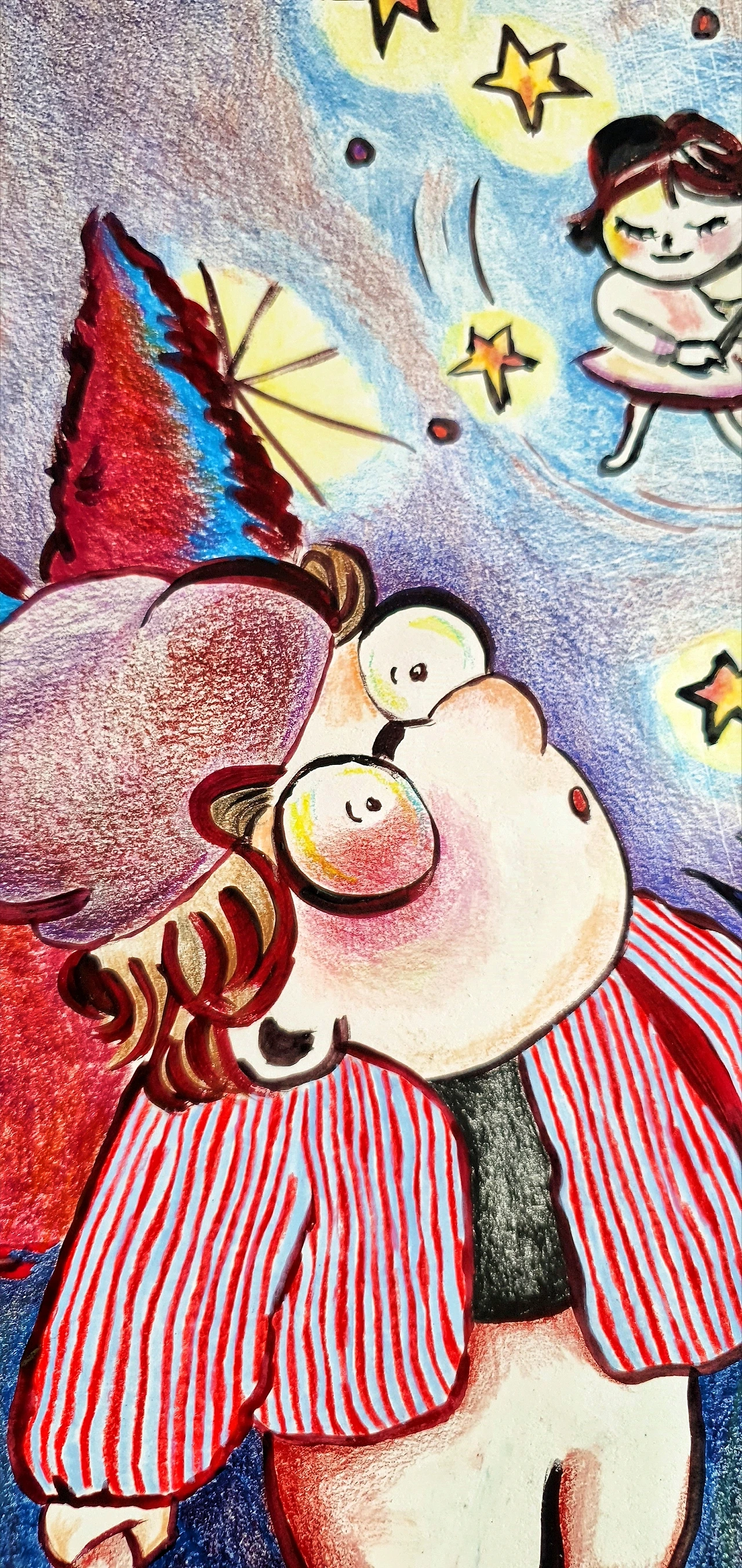 얼음같이 차가워진 코에서는 계속 콧물이 간지럽게 흘렀다. 소년은 손등으로 콧물을 닦은 후 눈이 묻은 바지를 툭툭 털고 숲에서 나가기 위해 일어섰다. 다시 집으로 돌아가려는데 마치 불을 비춘 듯 숲이 환하게 밝아졌다. 눈이 좋지 않았던 소년은 자신의 얼굴처럼 둥근 안경을 고쳐 쓰고 두어 번 눈을 깜박인 다음 다시 눈을 떴다. 여전히 숲 속은 밝은 그대로였다. 주위를 둘러보다 아름다운 음악소리가 희미하게 들리는 쪽으로 고개를 들어보니 머리 위에서 작은 요정이 바이올린을 연주하고 있었다. 요정의 주변으로는 별들이 내려와 빛나고 있었다. 요정은 소년과 소년의 엄마가 자주 부르던 곡을 연주했다. 그러자 소년은 헤어진 엄마가 생각나 눈물이 났다. 소년은 별들을 보다가 할머니가 엄마는 달과 가장 가까운 친구별이 됐다고 했던 말이 떠올랐다. 혹시나 자신의 머리 위에서 빛나는 수많은 별들 중 엄마가 있지 않을까 생각하며 별들을 하나하나 살펴봤다. 하지만 아무리 봐도 어떤 별이 엄마인지 알 수 없었다. 콧물과 눈물을 닦은 손등이 축축해지자 소년의 머리 위에서 연주하던 요정은 연주를 멈추고 소년의 손에 작은 별을 쥐어주었다. 별은 소년의 생각과 달리 따뜻하고 부드러웠다. 차가웠던 소년의 손이 따뜻해졌다. 손안에 별을 보던 소년은 요정에게 고맙다는 말을 하기 위해 고개를 들었다. 하지만 어디에도 요정은 보이지 않았다. 게다가 다시 손을 보았을 때에는 별도 보이지 않았다. 소년은 없어진 별과 요정이 보고 싶었다. 펑펑 울며 집으로 돌아온 소년에게 할머니는 난로 위에 올려두었던 따뜻한 손수건으로 소년의 눈물을 닦아주었다. 소년이 눈물을 멈춰갈 때쯤 할머니는 소년을 꼭 안아주며 말했다.