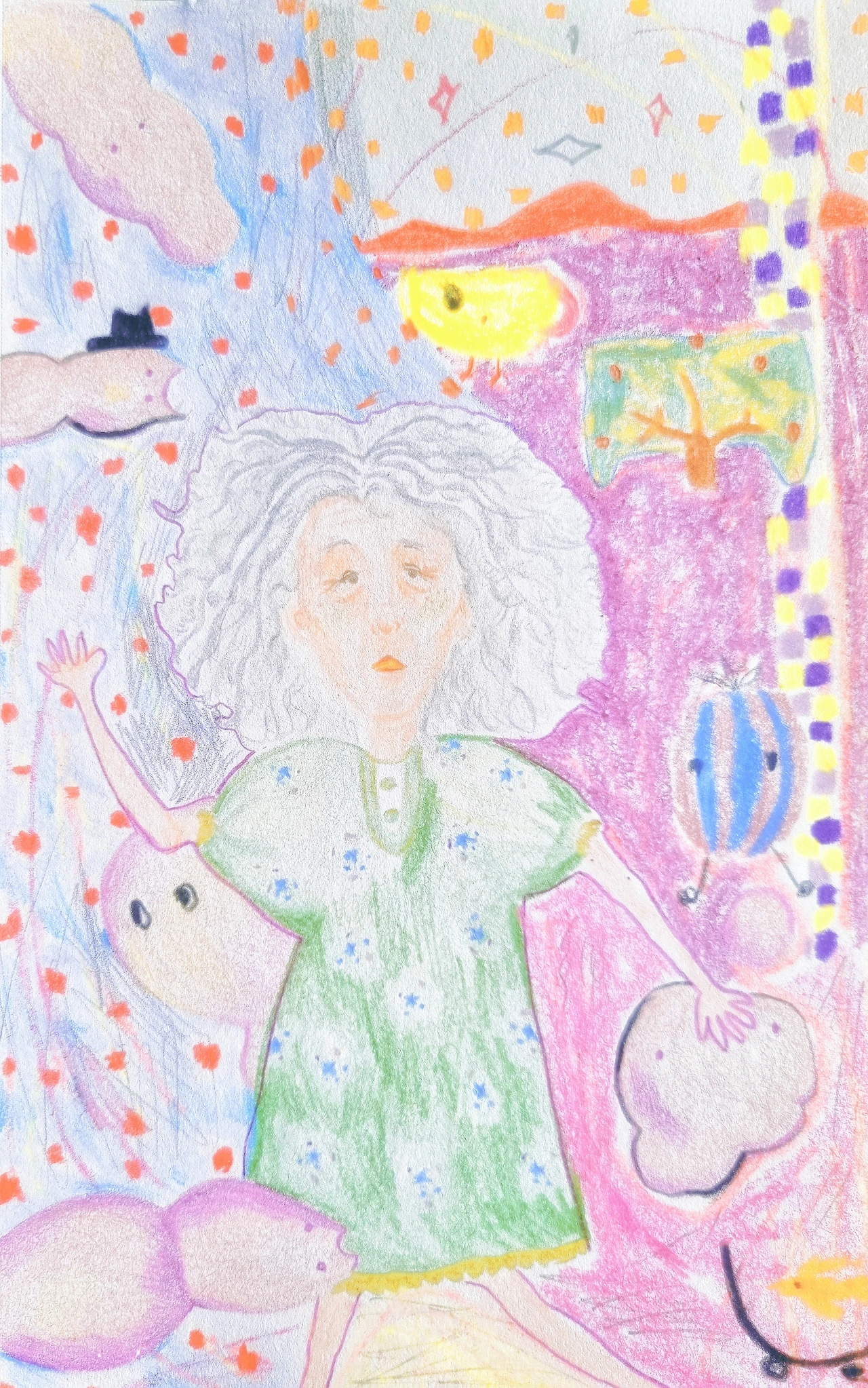 순영은 76번째 생일을 맞았다. 보라색과 하늘색이 섞인 작은 꽃들이 수놓아진 식탁에 손바닥만 한 크기의 케이크를 올려두고 초를 킬 지 말지 잠시 고민했다. 초코 생크림에 블루베리가 올라간 케이크가 예뻐서 먹기 전에는 망가뜨리기 아깝다고 생각했다. 그래서 그녀는 부엌에 있는 초코파이를 하나 가져온 다음 초코파이에 초를 꽂고 불을 붙인 후 눈을 감고 소원을 생각했다. 결혼을 하지 않았고 그녀의 부모는 이제 없기에 건강을 기도할 가족이 있지 않았다. 그래서 그녀는 옆 집 강아지를 위해 기도했다. 강아지의 주인을 위해 기도 할 수도 있었지만 하지 않았다. 후- 하고 가볍게 초를 불고 그녀는 숟가락으로 케이크를 먹기 시작했다. 포크보다는 숟가락으로 케이크를 먹는 것이 더 좋았다. 케이크는 조각케이크보다는 컸지만 작았기 때문에 순영은 좋아하는 드라마를 보며 금세 케이크를 다 먹어버렸다. 틀어둔 낡은 선풍기가 회전하다 덜컥 덜컥 소리를 내면서 멈추었다. 순영은 멈춰버린 누런 선풍기를 베란다로 치우고 소파에 누웠다. 고장 난 선풍기처럼 자신의 몸도 여기저기 고장 나고 있다는 생각이 또 들었다. 순영은 천장을 바라보며 엄마를 떠올렸다. 순영의 엄마는 심장마비로 돌아가셨다. 순영은 자신도 엄마처럼 심장마비로 죽었으면 좋겠다는 생각을 했다. 하지만 그녀는 늘 죽음이 꽤 멀리 있다고 느껴왔다. 오늘 아침만 해도 그랬던 것이 케이크를 고르러 가는 발걸음은 느렸지만 마음은 말랑한 젤리처럼 가볍고 달콤했다. 곁에서 축하해 줄 사람도 없었지만 그녀는 늘 자신이 혼자가 아니라고 생각했다. 그녀는 그렇게 그 나이를 가지게 됐던 세월 동안 때로는 좋아하는 음악을 듣고 좋아하는 시를 보면서 외로움을 쓸어 담듯 모아 잘 정리하고는 했다. 그리고 자신이 죽고 난 후 더러워질 집을 치울 사람에 대한 걱정을 했다. 구겨져 흐물거리는 종이 같은 자신의 팔과 손을 만지작거리다가 티브이를 끄고 양치를 한 후 그녀는 침대가 아닌 소파에 누웠다. 친구의 아들 며느리가 보내준 얇은 보라색 이불을 덮고 눈을 감았다. 조용해진 집 안에 장맛비 소리가 들렸다. 오른쪽으로 누운 후 식탁을 보니 정리하지 않은 케이크 박스와 숟가락이 보였다. 그때 문득 엄마의 잔소리가 생각났다. 그녀의 엄마는 늘 바로바로 치우라는 잔소리를 하곤 했다. 순영은 속으로 '엄마가 저 걸 봤으면 또 한 소리를 했겠지' 하고 생각하며 웃었다. 그렇게 엄마 생각을 조금 더 하다가 잠에 들었다. 순영은 새벽 내내 꿈을 꾸었다. 마트에서 보던 지렁이 모양의 젤리가 그녀의 집 안에서 둥둥 떠다니는 꿈이었다. 순영도 젤리처럼 지렁이 젤리들과 둥실 떠다니고 있었다. 포도사탕 향과 레몬향이 가득 퍼지는 꿈이었다. 순영은 말랑한 젤리들을 만지다가 이상한 느낌이 들어 자신의 팔을 눌러보았다. 종이 같던 자신의 팔이 젤리처럼 탱탱하고 말랑했다. 혹시나 싶어 코를 대고 냄새를 맡아보았지만 그냥 살냄새가 났다. 젤리로 변한 건 아니어서 다행이라고 생각했다. 순영은 한참 동안 젤리들과 떠다니다 늦은 점심쯤 잠에서 깼다. 꿈에서 깬 순영은 일어나자마자 팔을 만져보았다. 딱딱하고 수분기 없는 감촉이었다. 순영은 소파 위에 이불을 두 번 정도 접어 올려둔 후 어제 치우지 않은 식탁을 정리했다. 마트에 가서 지렁이 젤리를 사야겠다고 생각했다.