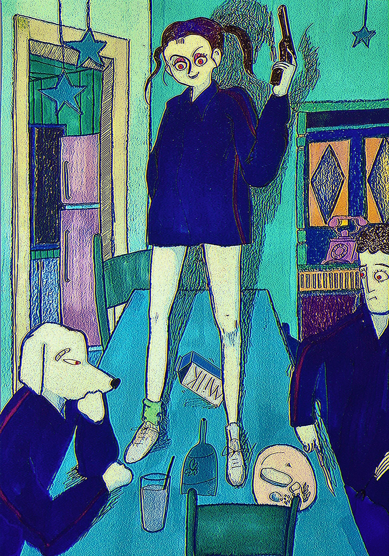 맥스는 하얀 왼쪽 귀를 한번 펄럭 대며 그 애를 바라 봤다. 그러자 그 애는 잔뜩 신난 눈빛으로 맥스와 헝그리를 바라봤다. 헝그리는 스테이크를 써는 데 정신이 없었다. 그 애의 신난 왼발이 바닥을 쿵쿵 두 번 내리치더니 다람쥐처럼 식탁 위로 올라와 왼손에 든 리볼버를 가볍게 여러 번 돌렸다. 음악은 없었지만 그 애 안에는 이미 질주의 음악이 흐르고 있는 듯했다.