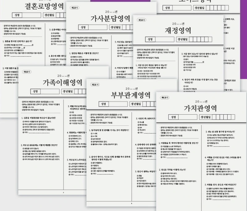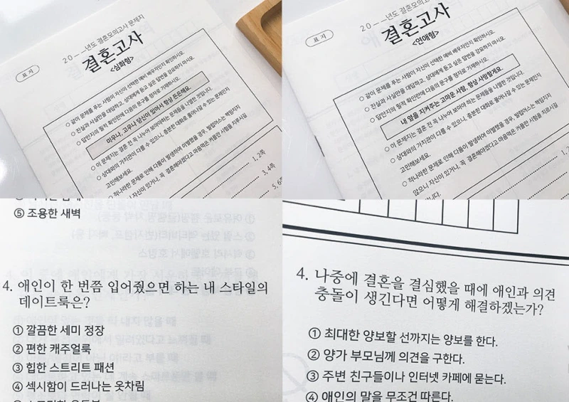 요즘 결혼하는 예비신부, 예랑이들은 결혼고사 란걸 한다고 한다. 나도 처음 보았는데 재미있고 신기했다