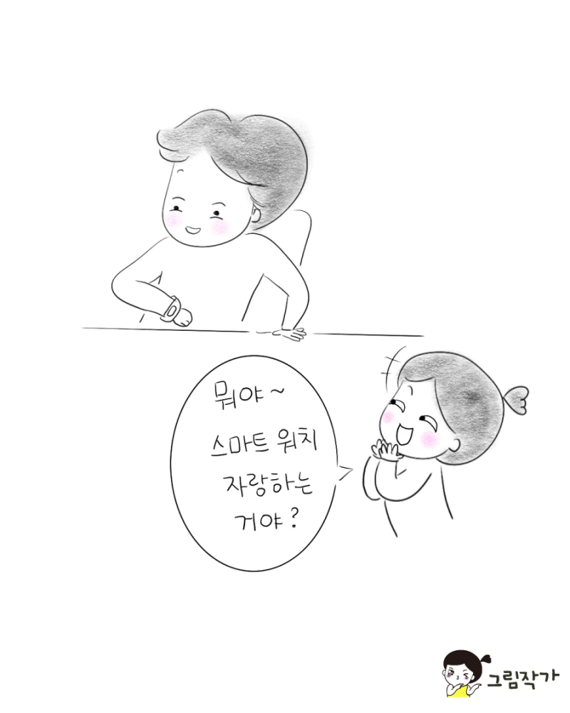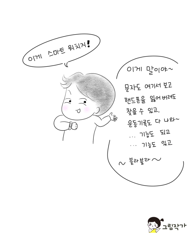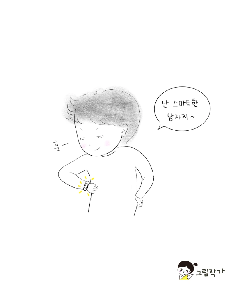 그래도 어느날 팔을 올리고 보란듯이 스마트 워치를 보는 남편에게