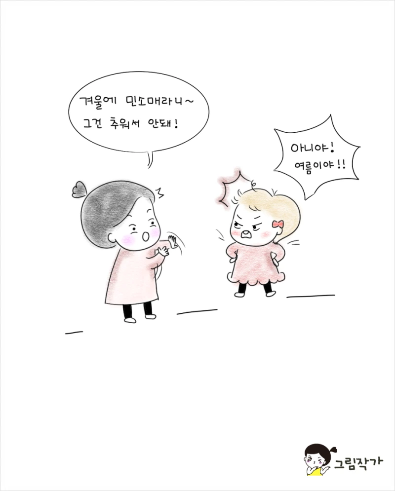 아이들은 아빠의 복장을 보고 계절을 분간하기도 하고, 엘사옷처럼 마음에 드는 옷이면 한 겨울에 여름옷을 입겠다고 하기도 한다.