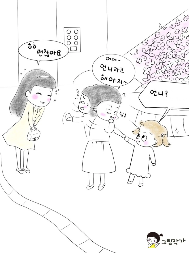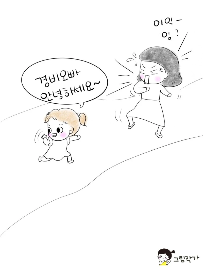 가르쳤나보다. 아이가 경비할아버지께 오빠라고 ...ㅋㅋㅋㅋ