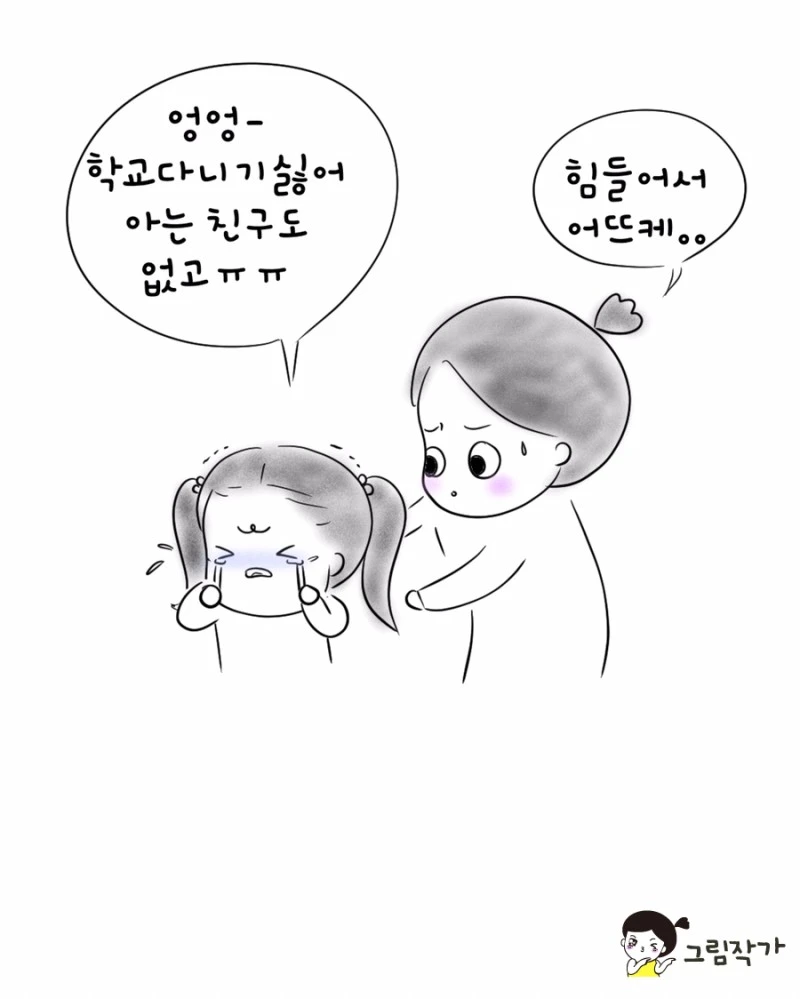 친구들과 같이 초등학교에 입학할 줄 알았다가 친구와 헤어져 낯선 곳에서 시작하는 학교 생활이 힘들어서 초반에 많이도 울었다.