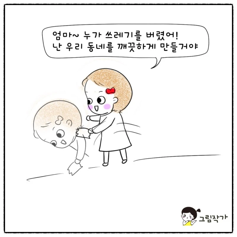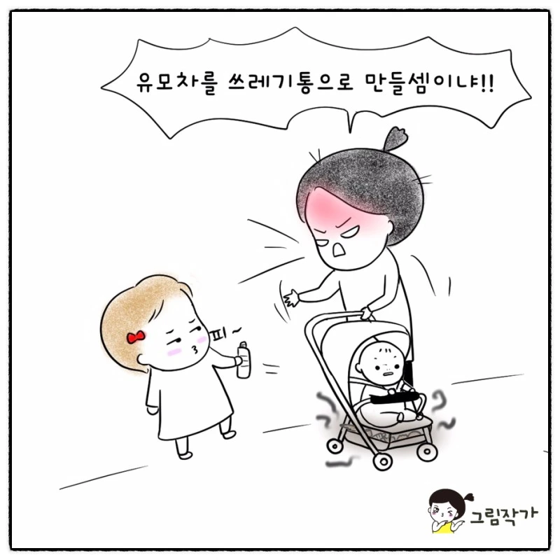 말렸는데 다른 사람들에게 엄마가 쓰레기 못줍게한다고...졸지에 난 나쁜사람이 되었다. ㅎㅎㅎ