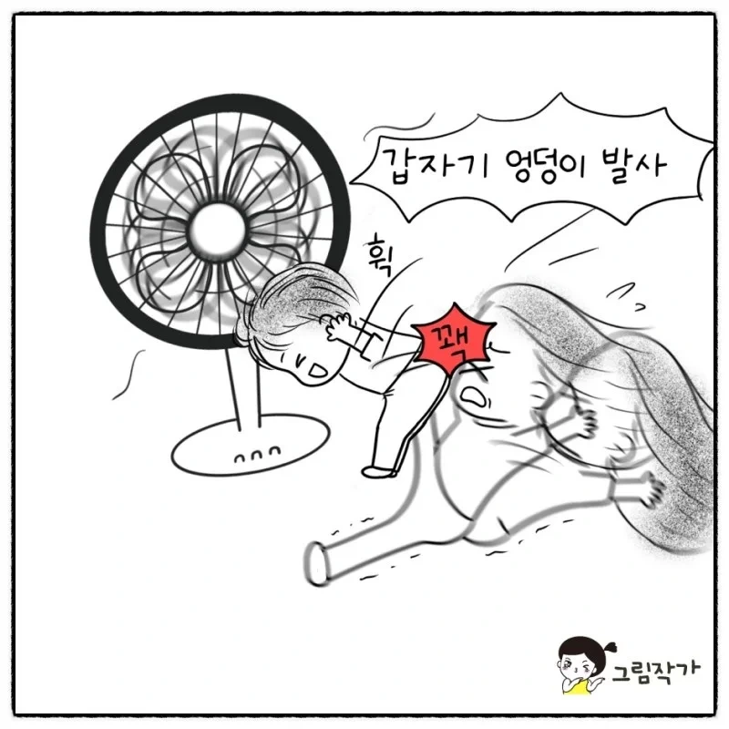 선풍기를 켤땐 엉덩이 공격을 유의할 것.