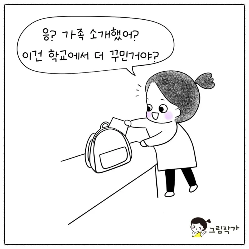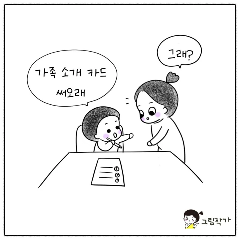 한참 가족관계를 배우면서 가족소개를 미리 준비해오는 숙제가 있었는데요,