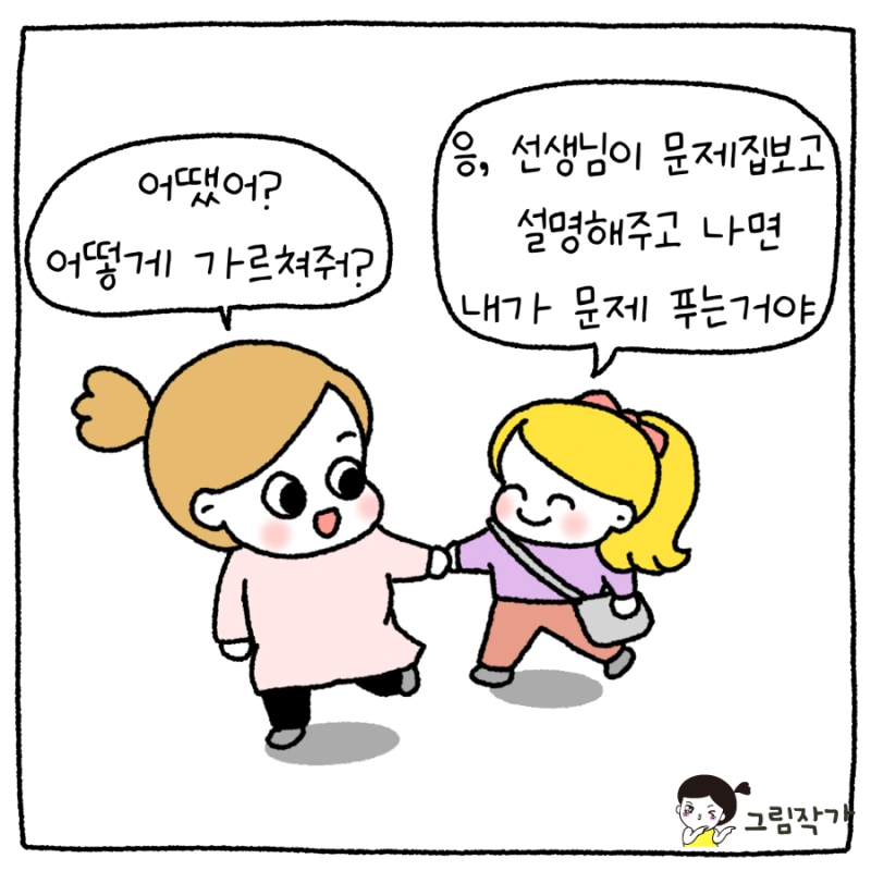 선행을 하지 않기 때문에 학교에서 배우는것과 비슷하게 진도를 나가니