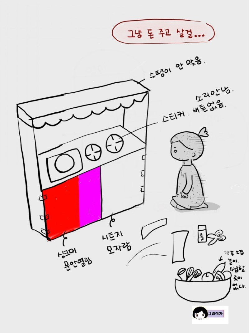 대가족시대에 육아를 나누어하는것과 달리 엄마 혼자육아를 하는경우가 많아져서인지 엄마표라는 이름의 많은 것들이 생겨난다. 엄마표 영어는 너무 흔하고 엄마표 미술,수학,과학놀이등등 .. 나도 엄마표로 해보겠다고 처음 주방놀이를 만들었었다. 엉성해도 엄마의 정성이 들어가고 비용도 아끼는 줄 알았다.