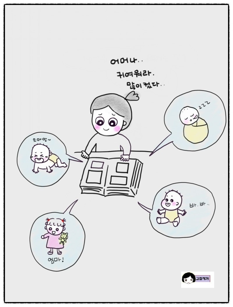 처음 아이를 낳고 한참 힘들때 티비에서 어떤분이 앨범을 들여다보며 그리워하는 장면이 생각이 난다. 장성한 딸을 옆에 두고도 3살때의 딸아이가 그립다고 했다. 그때는 언뜻 이해하기가 어려웠는데 점점 그 말 뜻을 깨닫게 된다.. 아이가 어릴때는 언제크나 싶더니만 이제 조금 컸다고 더 어렸을때 사진을 보면 대견하고 하고 아쉽기도 하고 잘 못해준 것도 생각나고.. 눈물을 글썽이며 혼자 감성에 젖어든다. 문제는 그러다가도 현실 아이에게 샤우팅을 하기도 한다는거다. 지킬앤 하이드 처럼도 ㅎㅎㅎ
