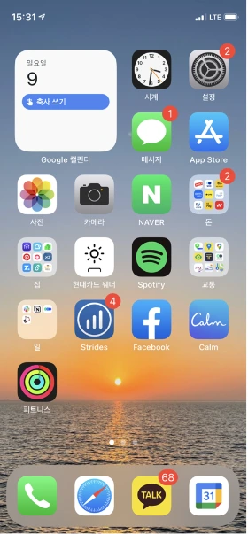 배경화면에서 제가 가장 자주 사용하는 앱들은 카카오톡 제외하고 구글 캘린더, 캄, 노션, 스포티파이, 네이버지도에요. 캄은 매일 자기 전에, 스포티파이는 매일 아침에 일어나면 습관적으로 써요. 구글 캘린더도 이제는 없으면 친구 생일도 못 챙길 지경이랍니다. 또 길치인 저는 네이버지도를 정말로 애용하는데요, 약속장소 가기 전에 꼭 쓰는 앱으로, 저 같은 길치도 길을 잘 찾을 수 있도록 도와줘요. 이 밖에도 일상적으로 현대카드 웨더나 애플워치 피트니스 앱, 슬랙(힙서비를 위해 사용해요) 등을 이용합니다�