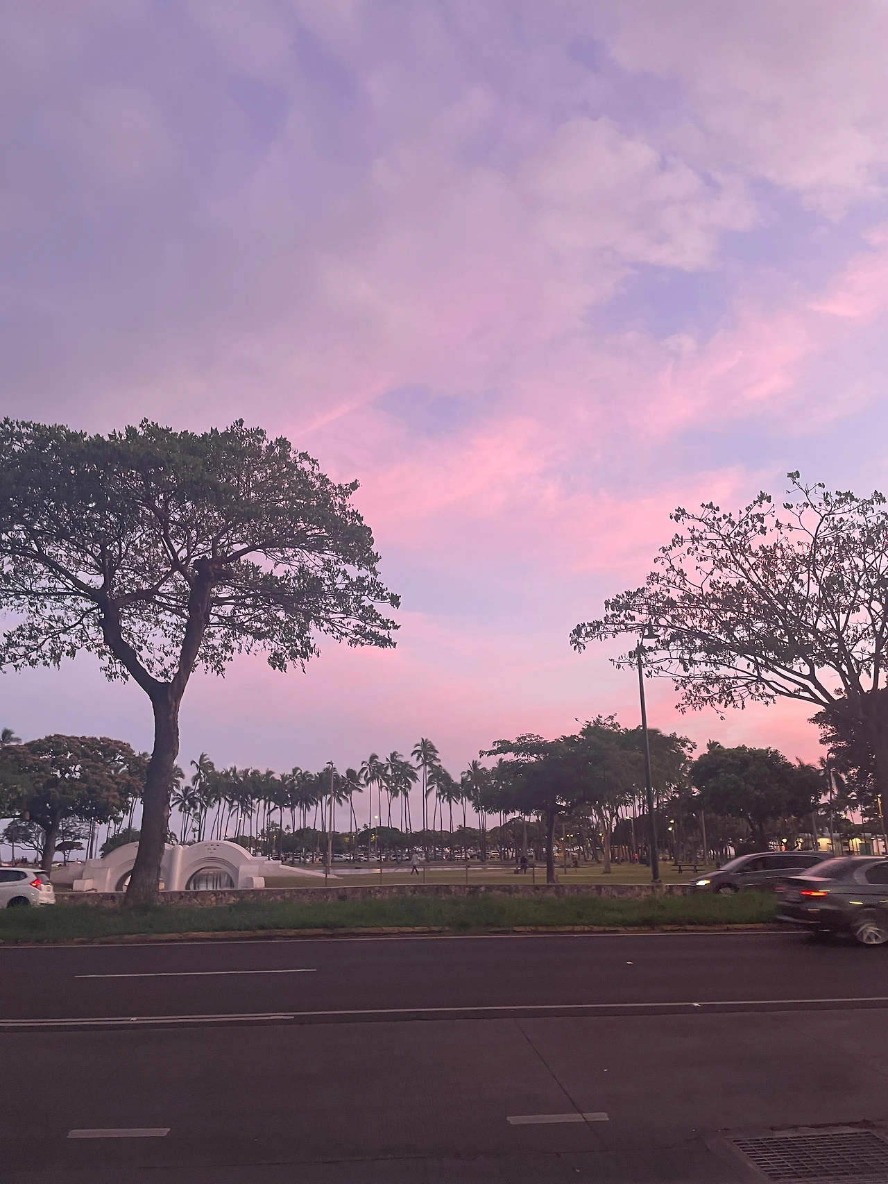 숙소 구경을 마친 우리는 우리는 설레는 마음으로 거리로 나왔다. 절로 눈이 감기는 쨍한 햇살과 산뜻하고 건조한 바람이 기뻤다. 모든 거리가 사진배경이었고 우리는 주인공이었다. 비키니에 커버업만 걸친 사람들, 비치체어를 어깨에 메고 걷는 사람들과 함께 와이키키에 도착했다. 해 질 녘의 와이키키에 대해서는 왜 아무도 알려주지 않은 걸까? 아무 방어 없이 맞닥뜨린 비치의 아름다움에 넋을 놓을 것 같았다. 바다 가까이 내려온 해는 너무 강해서 그 외의 것들은 까만 형체로만 보이게 했는데, 그 모습이 아련한 다른 세상 같았다. 같은 지구인데 내가 있던 곳과 어떻게 이렇게 다른 걸까? 한참을 아름다운 바다를 바라보고 발을 적시고 얘기를 나누었다. 맨발로 철퍼덕 모래밭에 앉아도 자연스러운 곳이었다. 이곳이 바로 지상낙원이렸다.