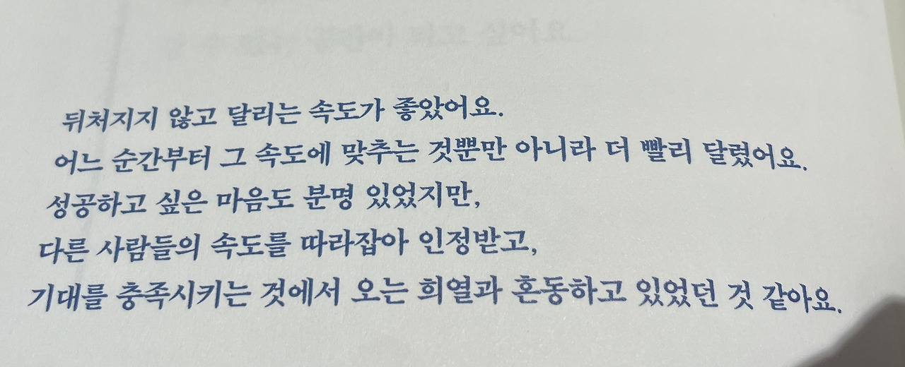 종종 생각을 한다. 의미 없이 날리는 시간들 -유튜브를 보고나 핸드폰을 만지작거리는 시간- 을 인생에서 제거해버리면 삶이 너무나 효율적으로 돌아갈 텐데. [기상, 산책, 아침식사, 독서, 일, 강아지 산책, 운동, 수면] 하루 일련의 과정을 새는 시간 없이 빡빡하게 채울 수 있을텐데 하고 생각을 한다. 너무 지쳐 가만히 강아지를 볼 때도 이렇게 가만히 있을 시간에 메일을 하나 더 써야 한다는 생각이 든다. 다만 내가 바라는대로 쉼 없이 달리는 것조차 정신적인 에너지가 너무나도 필요하다.