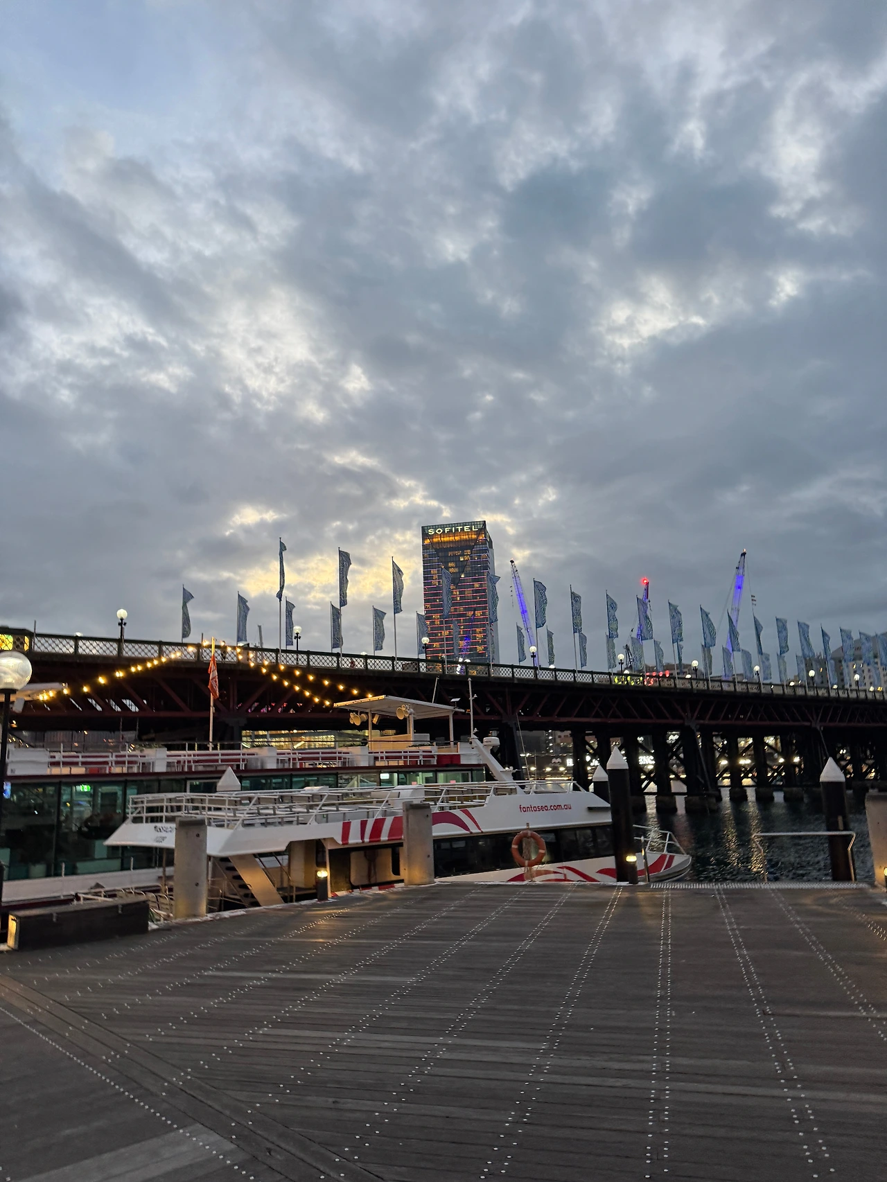 기분 좋게 한 잔 하고 숙소로 돌아왔더니 도착한 숙소도 너무 좋았다. 창 밖 오른쪽으로는 멀리 달링하버가 보였고 방은 너무나 깔끔하고 세련된 현대식 호텔이었다. 푹신한 침구에 누워서 뒹굴뒹굴 하다가 저녁을 먹으러 살살 달링하버로 나갔다. 하버가 보이는 곳에서 부야베제와 가리비요리를 시켜서 화이트와인과 함께 먹었다. 쌀쌀하고 축축한 날씨에 따뜻한 토마토국물과 시원한 화이트와인이 들어가니 환상적인 조화였다. 옆테이블에서는 모녀가 군더더기 없이 생선한마리 요리와 와인 한 병을 먹고 있었는데 왠지 인상 깊었다. 우리는 회는 먹어도 스끼다시가 필요하고 레스토랑에서 생선구이만 시키는 일은 거의 없어서 괜히 생소했다. 밤이 깊어져 로맨틱한 다리를 건너 주변 마트에 와인 구경을 하고 숙소로 돌아왔다.