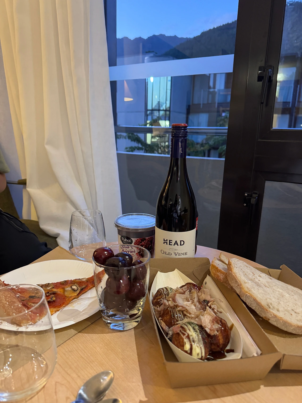 숙소에 도착해서 전리품들을 와인과 함께 먹었다. 시드니에서 사서 지고 온 그르나쉬라는 신대륙 품종의 와인으로 피노누아와 비슷하데 그것보다 조금 더 진한 맛이 오늘의 안주거리에 곁들이기에 딱이었다. 뉴질랜드/호주 지역의 피노누아는 유럽 와인에 비해 가벼운 편이라 밥과 먹기에는 조금 묽은 느낌이 있기도 했는데, 그르나쉬는 딱 그 아쉬운 부분을 잡아주는 와인이었다.