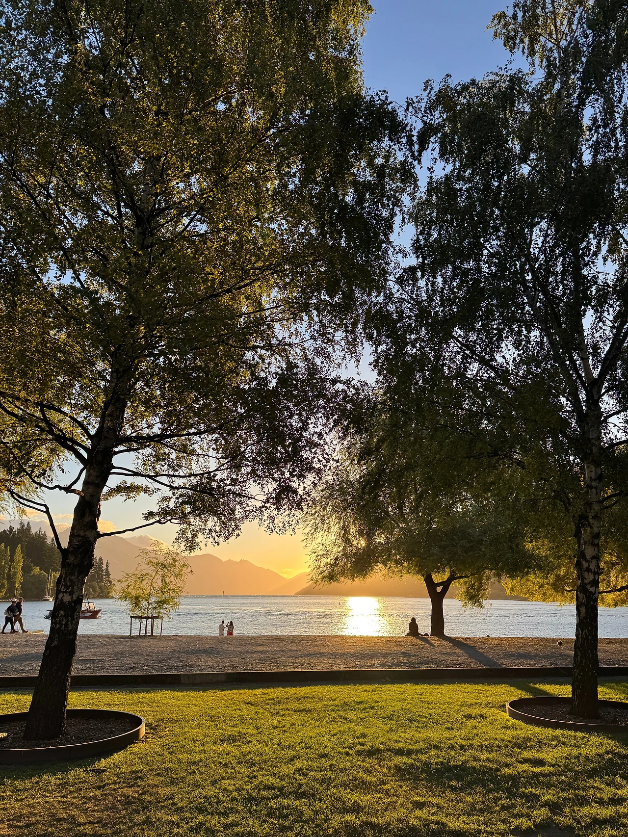 호수에는 물이 차운데도 수영하는 사람이 많았다. 시드니에서 못 하고 온 수영을 여기서 하겠구나! 싶어 신이 났지만 막상 발을 담그니 너무나 차가운 호숫물에 놀라 간만 보았다. 호숫가에서 한참 멍때리며 앉았다가 호텔 마당에서 돗자리를 깔고 해를 받으며 누워 잤다가 동네를 어슬렁거리며 구경하다가 보니 어느새 저녁놀이 진다. 아무 것도 하지 않으면서도 눈과 몸이 즐거운 이 시간이 너무나도 좋았다. 돗자리 펴고 누워있기, 앉아서 풍경 보며 멍때리기, 동네 산책하기. 이것이 내가 시간을 보내기를 원하는 방식이었다. 행복했다.