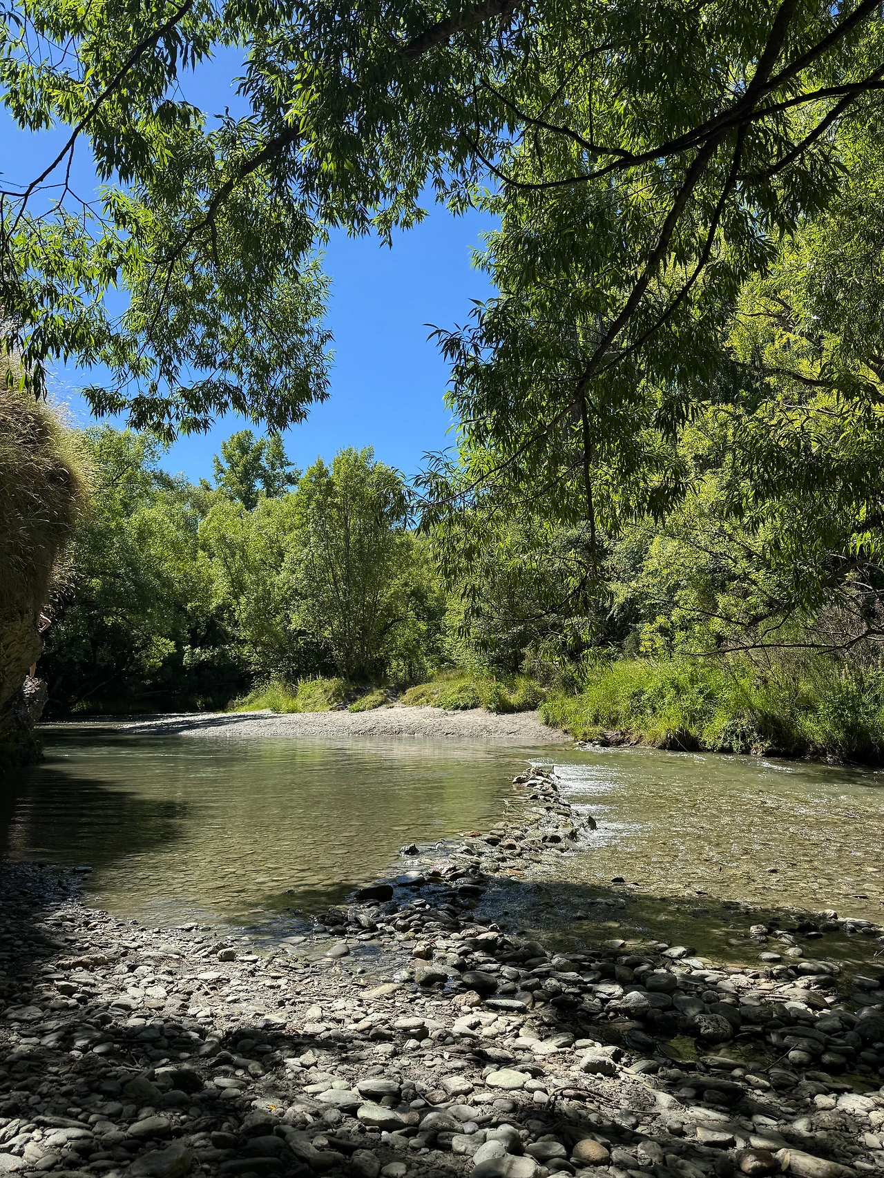 우리는 차를 타고 주변마을을 탐방했다. 옆마을 아무 도로로 네비를 찍고 가서 정처 없이 걸었다. 걷다 보니 계곡을 만나서 찬물에 체리를 씻어 사워도우를 먹었다. 찬물에 발을 담그고 그 곳에서 수영하는 아이들을 구경했다. 설산에서 타고 내려오는 물이라 아이들은 본격적인 웻수트를 입고 수영을 하고 있었다. 물이 차긴 차다. 계획 없이 만난 보석같은 계곡에 행복했다.