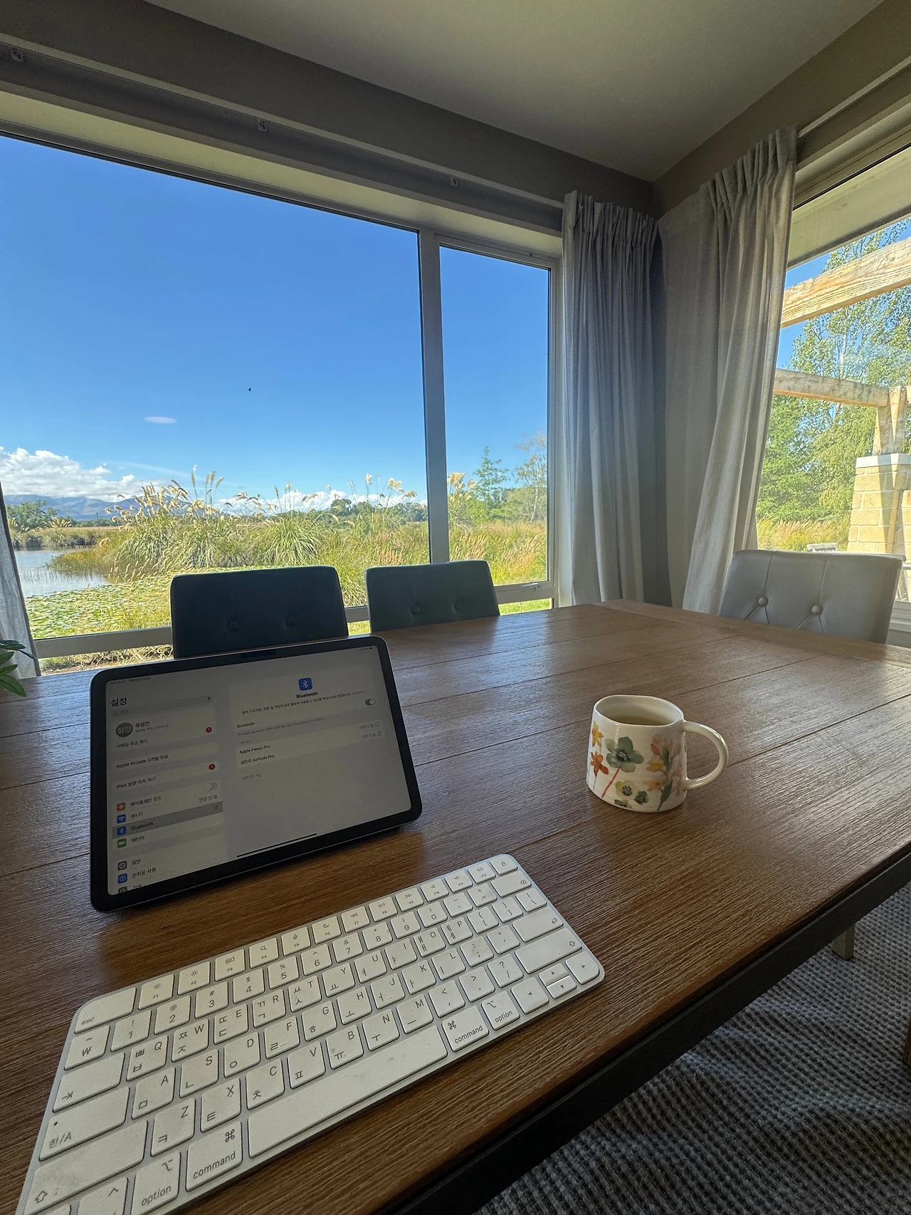 나는 여행지에서도 새로운 내 집을 찾고 싶다. 관광명소보다 다른 누군가의 손때가 뭍은 집이 좋다. 지금 이 순간이 호사롭다. 삼면으로 넘치게 들어오는 햇살과 산들바람에 흔들리는 커튼, 연못에 비치는 파란 하늘, 은초록빛으로 빛나는 갈대잎과 금빛갈대, 저어 멀리 몽글몽글한 구름과 초록갈색빛의 산까지. 들리는 건 새소리와 먼 도로에서 지나가는 차소리뿐. 이거 하려고 이 머나 먼 뉴질랜드까지 온 거다. 청각과 시각에 공백을 두려고, 세탁한 깨끗한 옷가지를 미세먼지 하나 없는 빨랫줄에 걸려고 온거다.