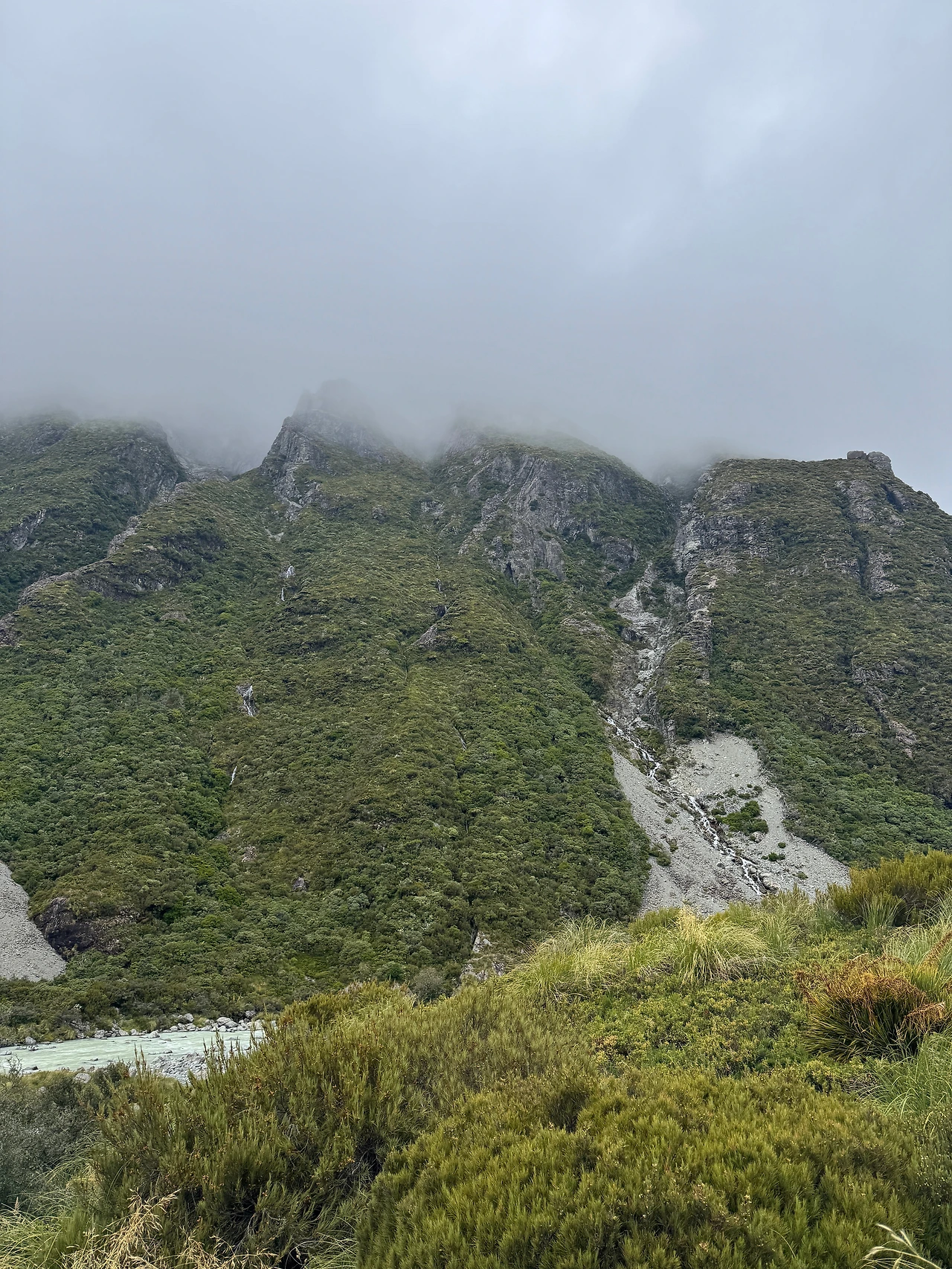 다음 날은 기대했던 트래킹을 가는 날이다. 마운트 쿡이라는 트래킹 명소가 숙소 주변에 있었다. 이 곳은 뉴질랜드에서 가장 높은 산으로, 산봉오리를 기준으로 왼쪽은 기온이 낮아 빙하가 많고, 오른쪽은 기온이 온난해서 아래쪽은 트래킹하기 적당한 돌과 흙으로 이루어진 산이었다. 날이 좋은 날엔 빙하를 볼 수 있는 멋진 트래킹코스인데 그에 비해 난이도는어렵지 않아 인기가 많은 곳이라고 한다. Whitehorse campsite를 찍고 가면 시작점과 가장 가깝다. 도착한 곳은 이미 그 곳에서 밤을 지낸 캠핑카들이 많았다.